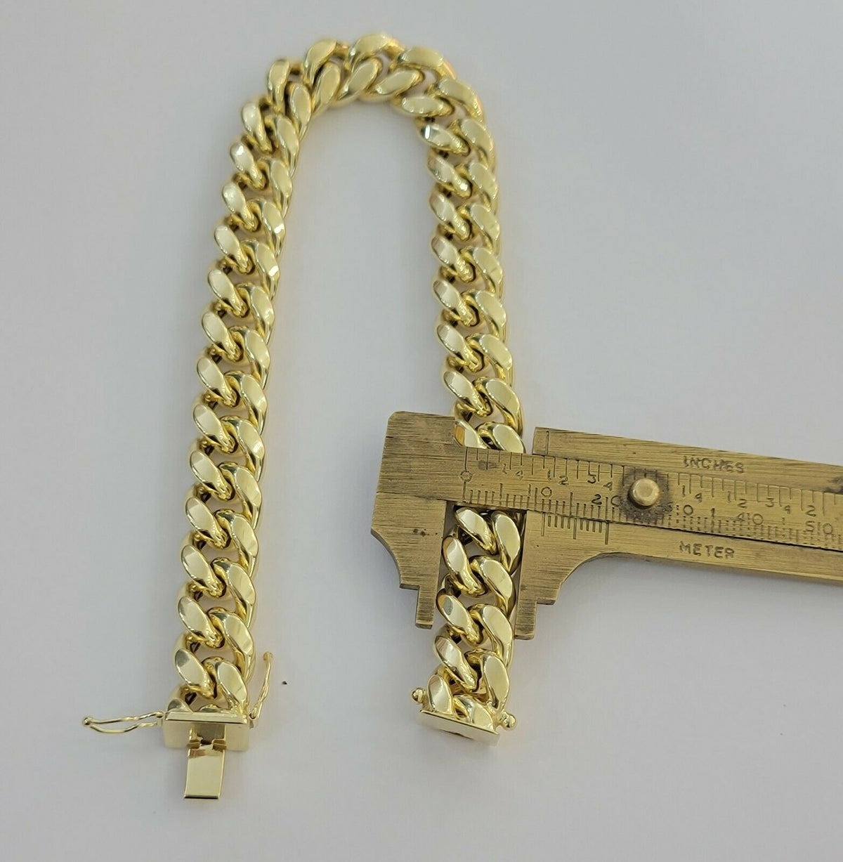 Men 10k Gold Miami Cuban Bracelet 11mm Thick 7.5" Box Lock10kt Yellow Gold REAL