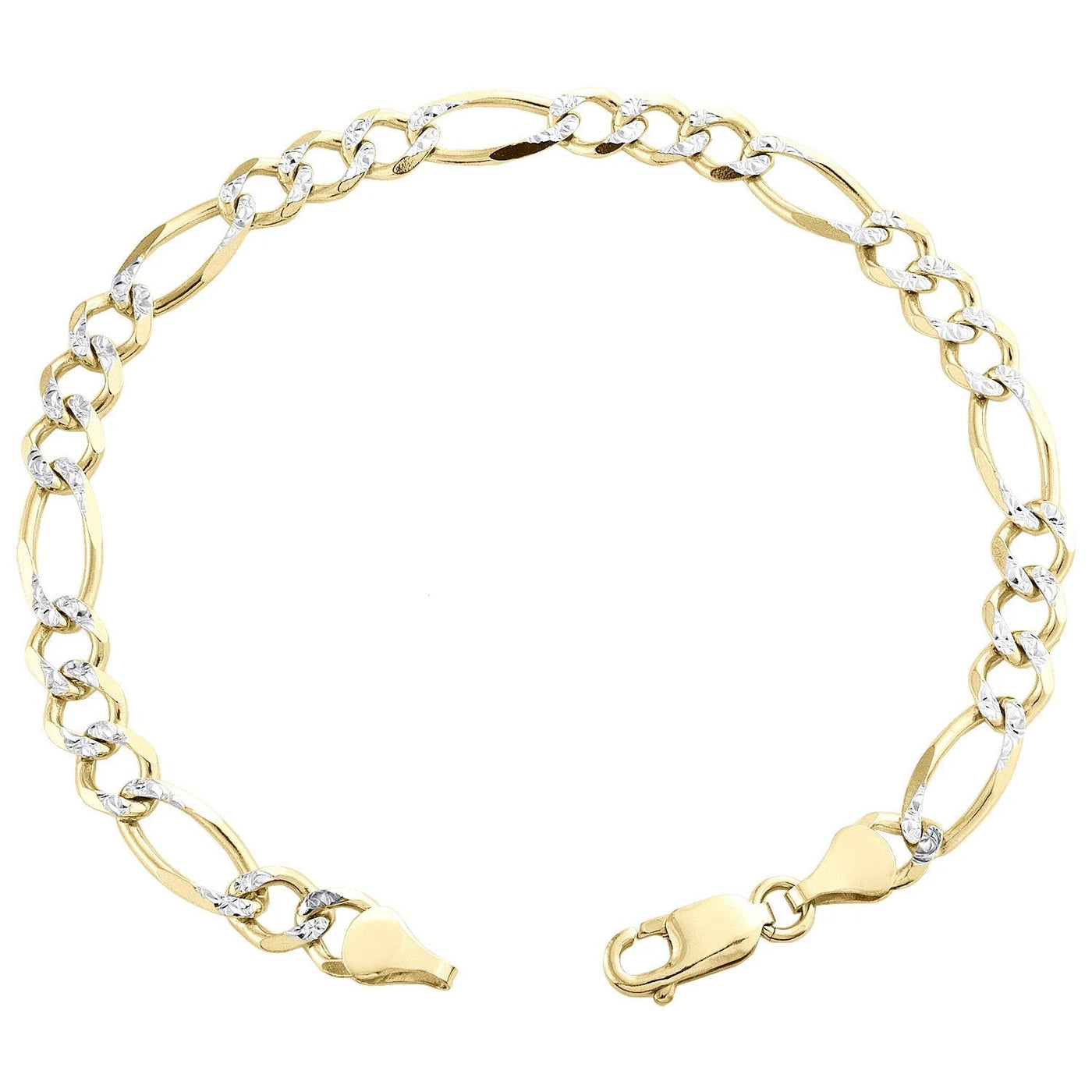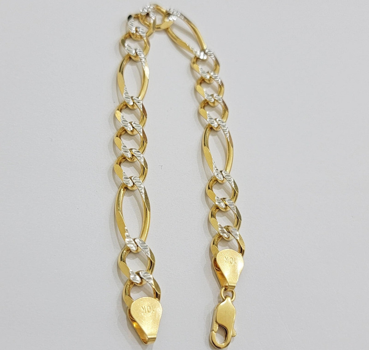 Mens Real 10k Yellow Gold Figaro Link Bracelet Diamond Cut 6.5 mm Solid 9 Inch