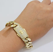 Real 10k Gold Bracelet Mens 9 inch 15mm Royal Cuban Link 10kt Yellow Gd CZ Lock