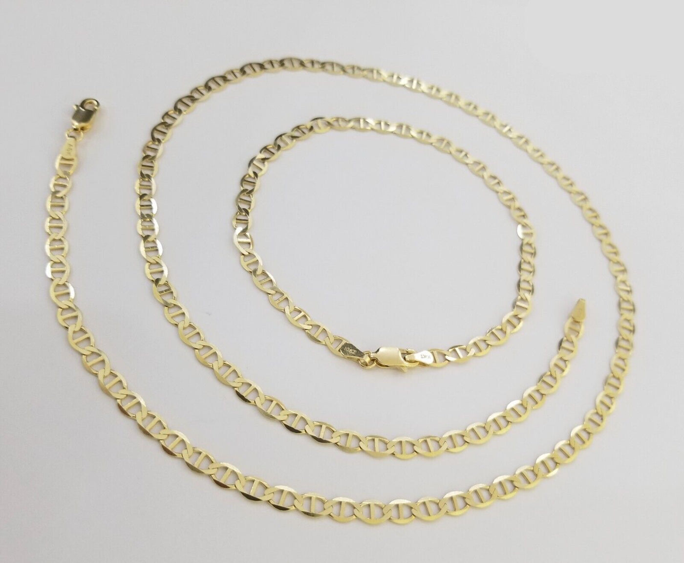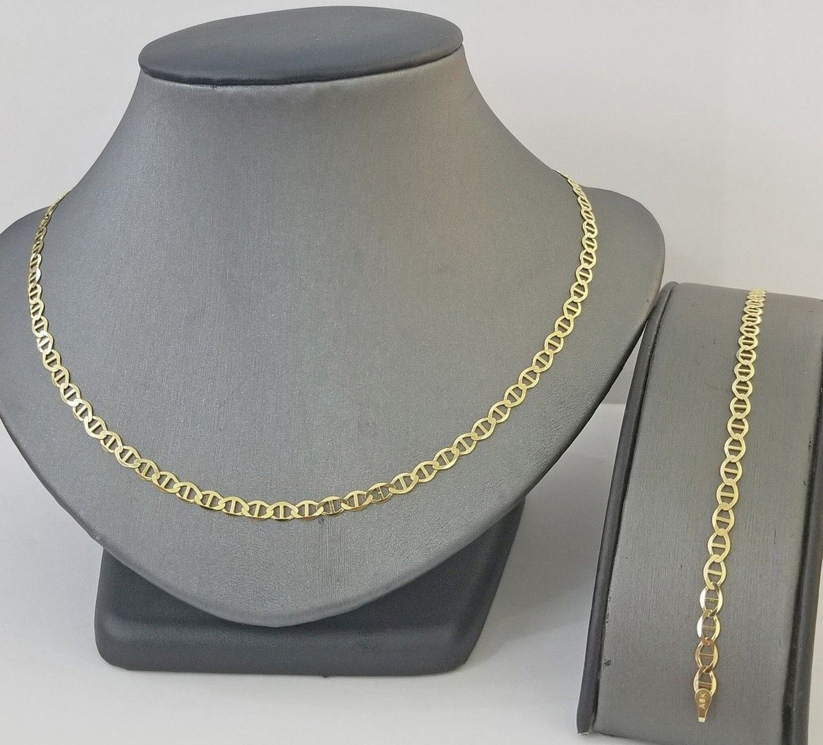 Real 10k Gold Mariner Anchor Link Chain Bracelet Set 4mm 20"- 24" Inch - 8" Bracelet