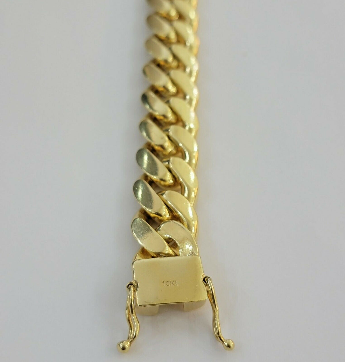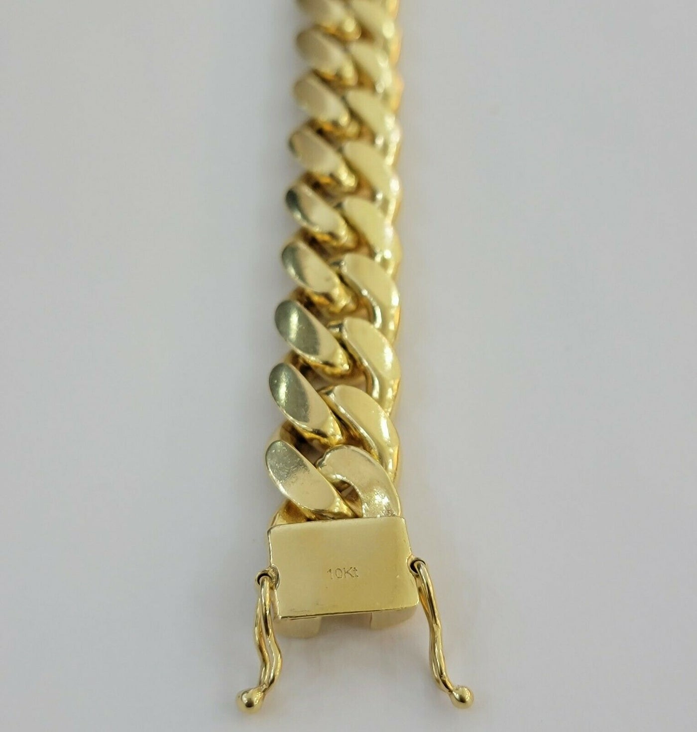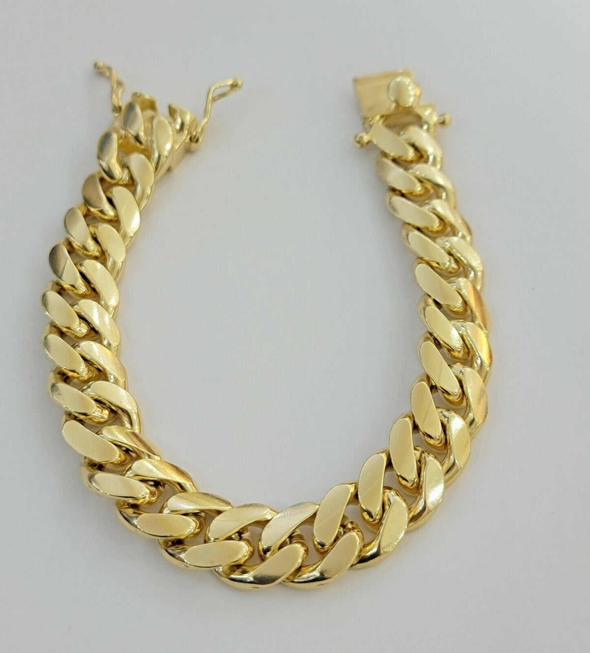 SOLID 10 K Yellow Gold ( Real , Not plated , Not filled ) Miami Cuban-Link Bracelet For Men's. The Width of the Bracelet is 13 mm (approx) and 9 Inch Long . The Clasp is Box Lock which is strong and safe lock for the bracelet. The bracelet is beautiful designed with Cuban-Link style. If you are not happy with the way it looks or feels, we do offer free return. Buyers need to make sure that the return item has to be in its original sent/ brand new condition with original tag attached. Violation in return policy might result in negative consequence.