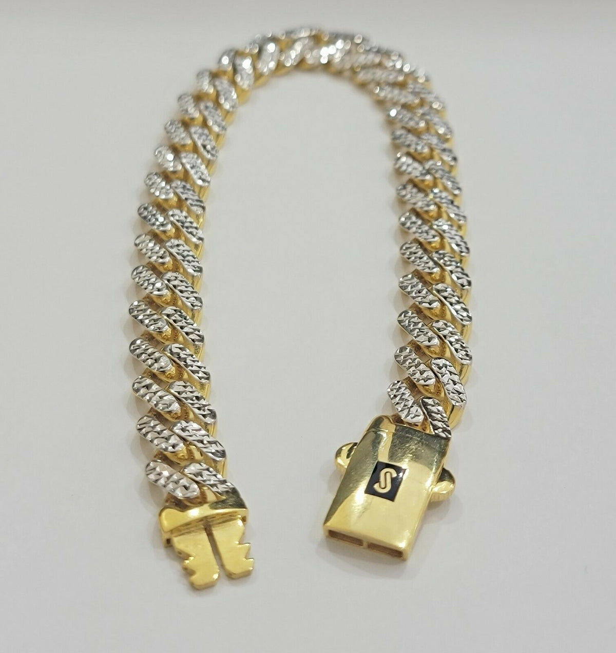 Real 10k Gold Monaco Bracelet 9mm 8" Two-tone Diamond Cut 10kt Gold SALE