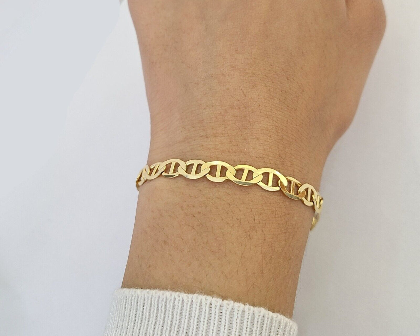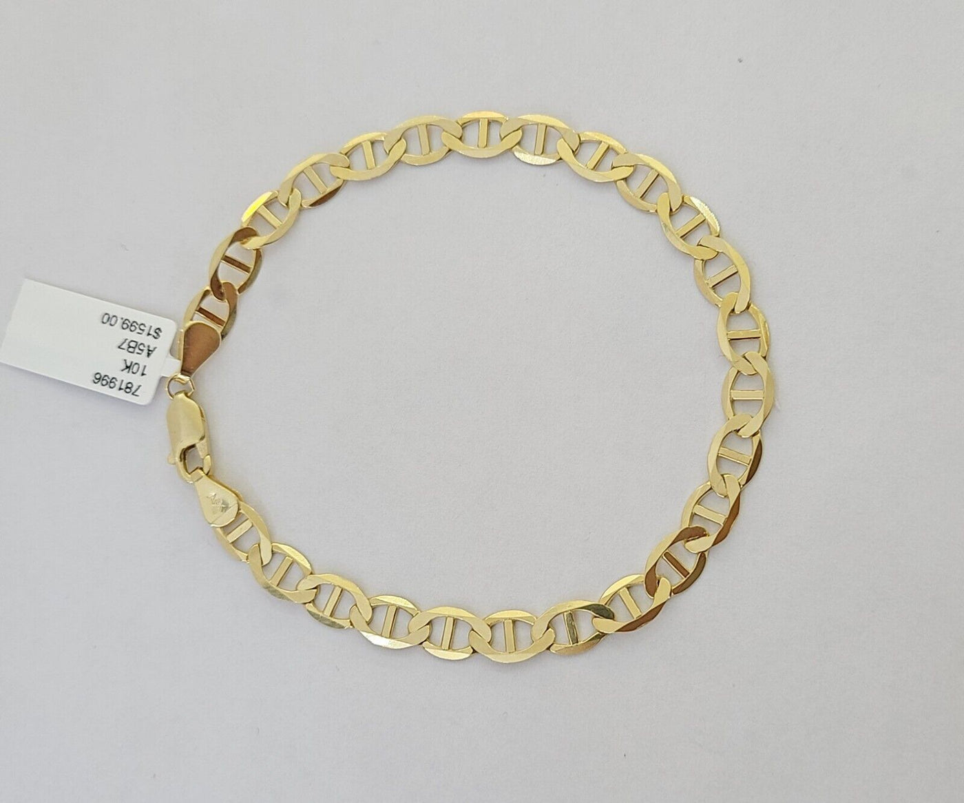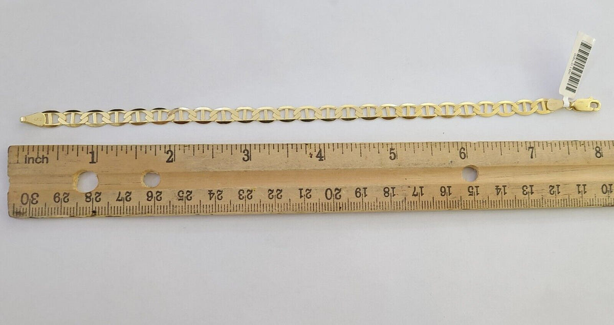Is Presenting You with This Absolutely Stunning Real 10k Yellow Gold Bracelet 6mm, 8 Inches, Lobster Lock. The links are 10K Gold and are very strong and have a Lobster lock . These Beautiful bracelets will not tarnish, discolor, or fade because they are Pure 10K Gold. We also have them in various another length. Please feel free to contact us if you have any queries regarding the item.