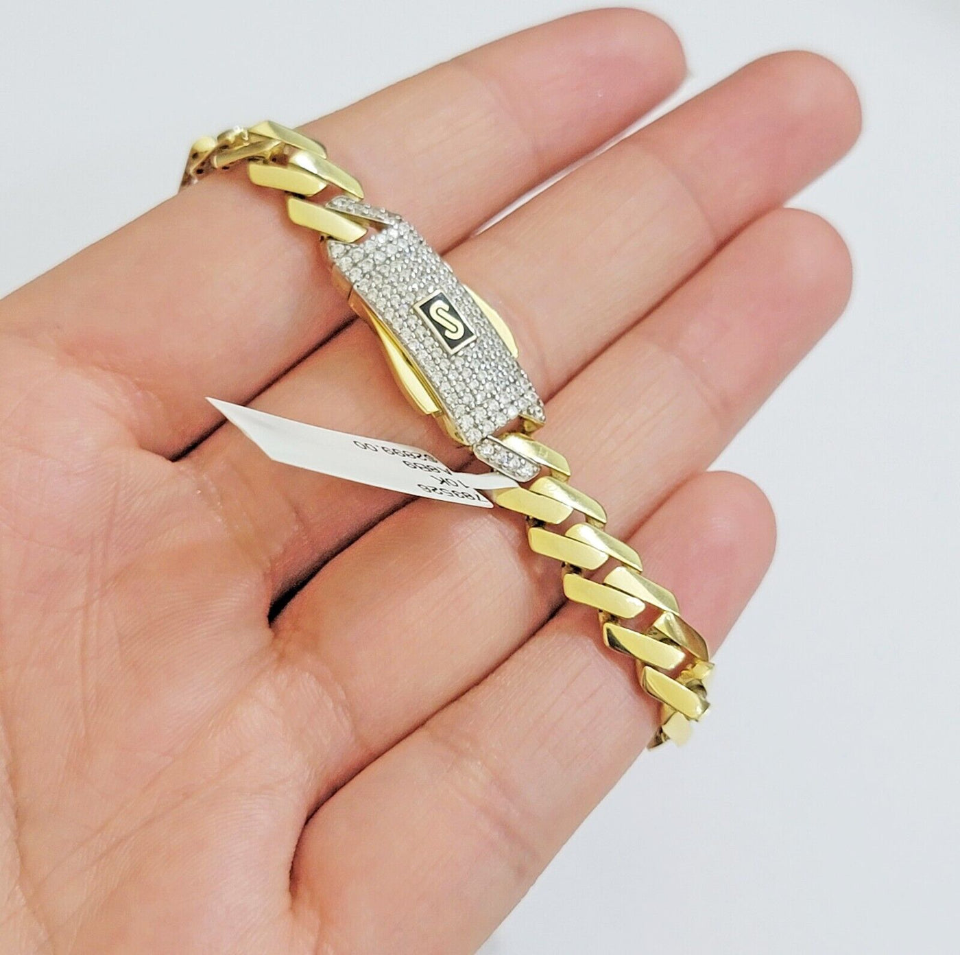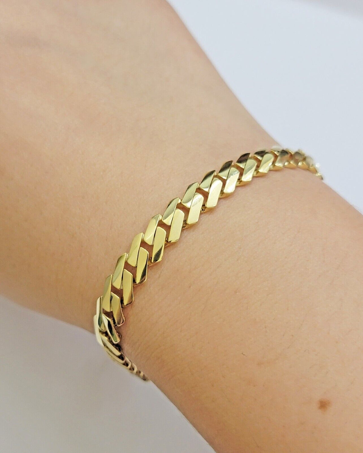 Real 10k Yellow Gold Bracelet Ladies 7.25 Inch 7mm Royal Monaco Cuban Link Women