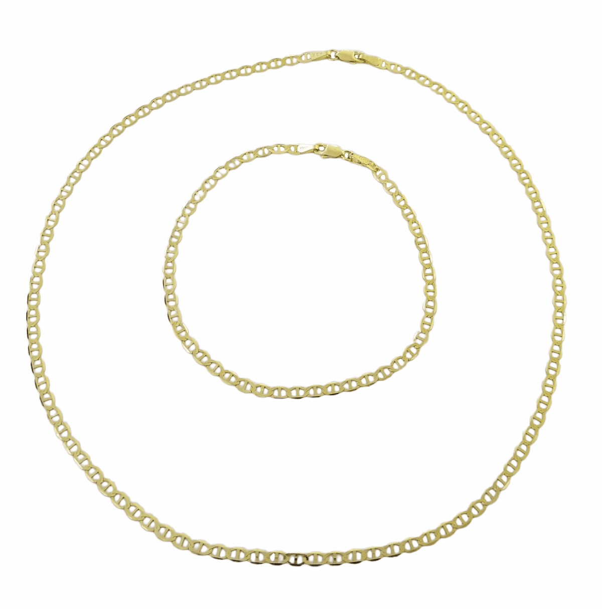 Is Presenting You with This Absolutely Stunning Real 10k Yellow Gold Mariner Anchor Link chain and bracelet.��These Beautiful chain and bracelet will not tarnish, discolor, or fade because they are Pure 10K Gold.��We also have them in various another sizes. Please feel free to contact us if you have any queries regarding the item.��