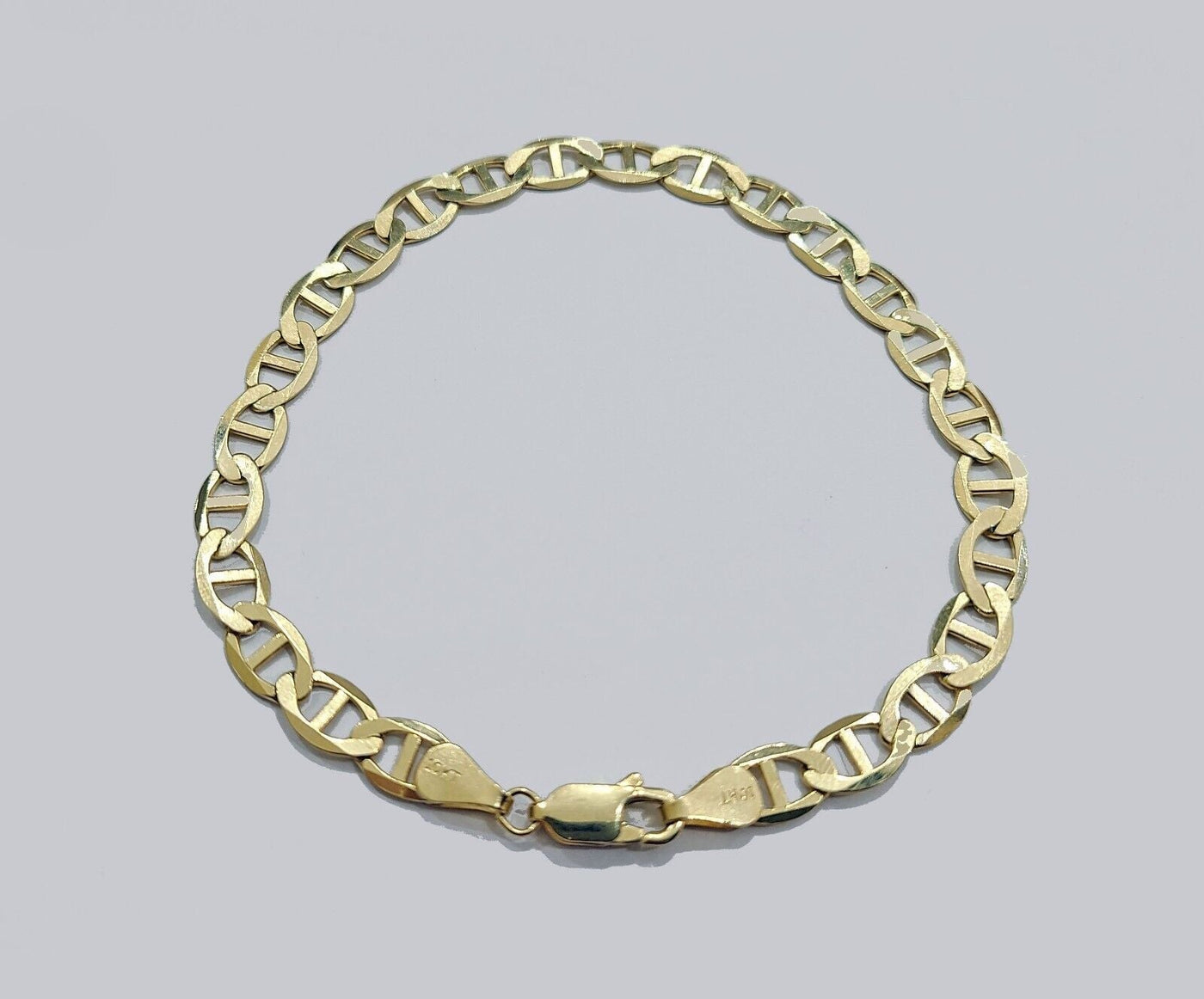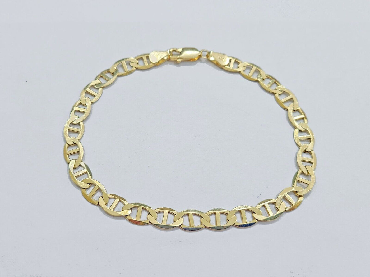 Real 10kt Yellow Gold Anchor Mariner Link Bracelet Unisex 8'' 6mm