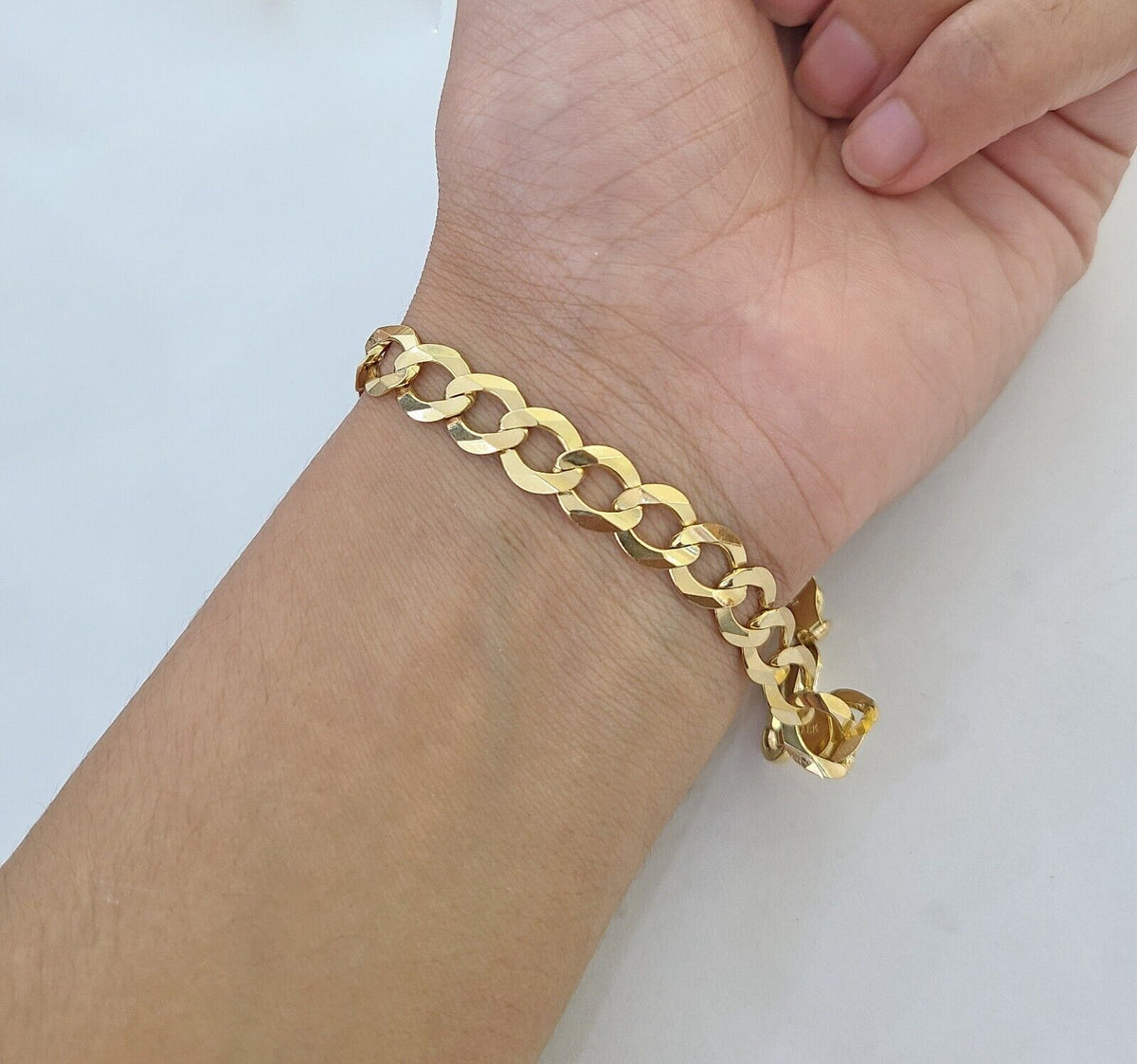 Is Presenting You with This Absolutely Stunning Real 10k Yellow Gold Cuban Curb Link Bracelet 8mm,8 Inches, Lobster Lock. The links are 10K GOLD and are very strong and have a box lock with the two safety clasp on sides.��These Beautiful bracelets will not tarnish, discolor, or fade because they are Pure 10K Gold.��We also have them in various another length. Please feel free to contact us if you have any queries regarding the item.