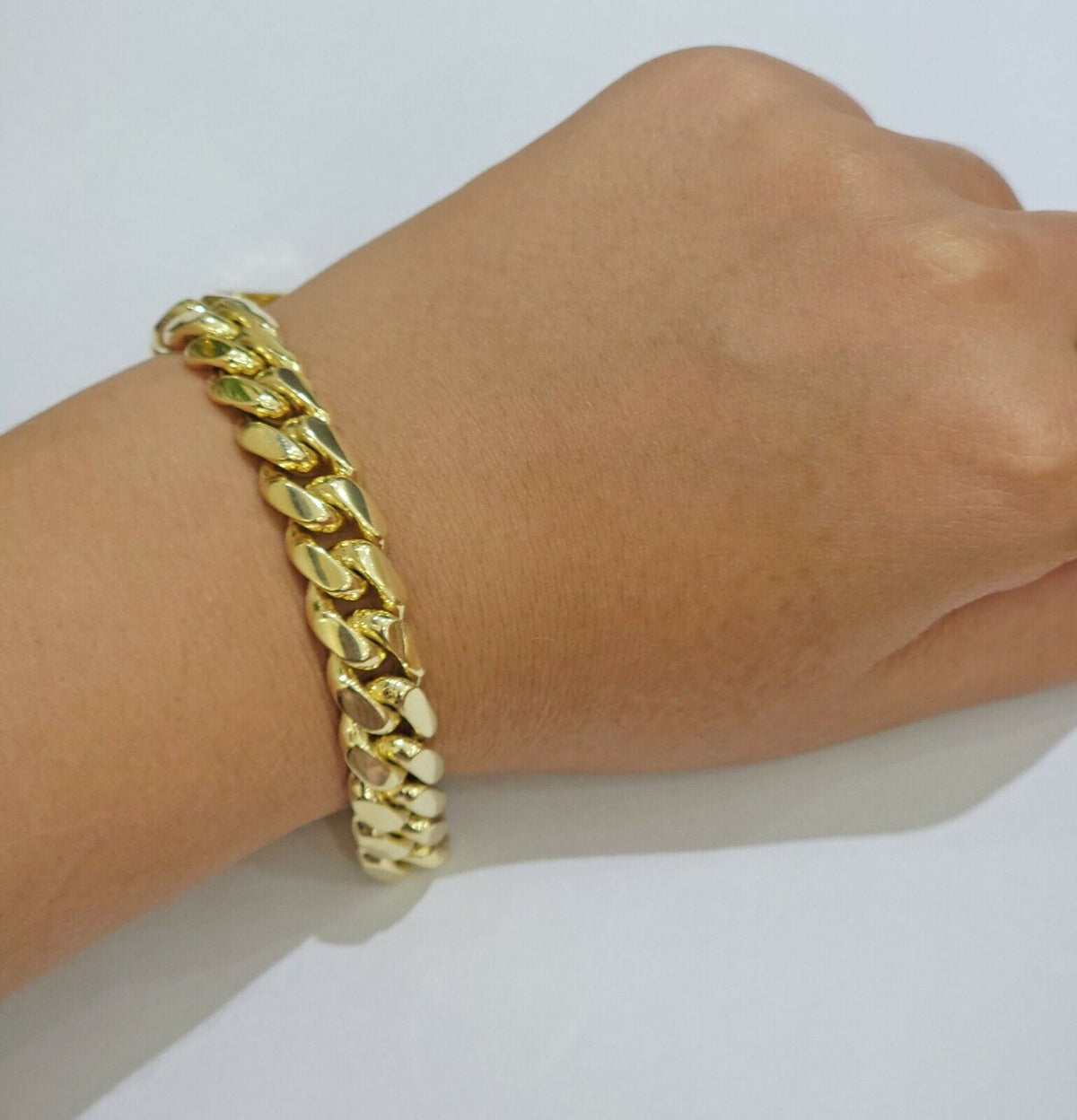 We present You with This Absolutely Stunning Real 10k Yellow Gold Miami Cuban Bracelet. It has a detailed cut with a very good finish.��This Beautiful bracelet will not tarnish, discolor, or fade because it is Pure 10K Gold. Please feel free to contact us if you have any queries regarding the item.��