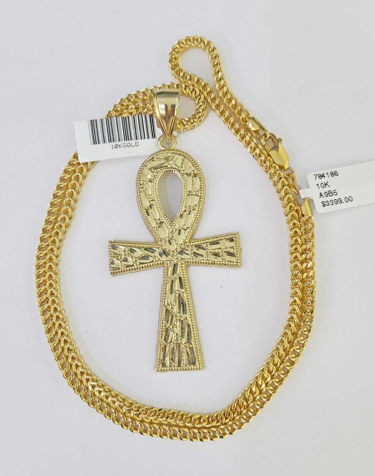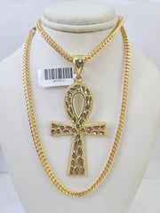 Is Presenting You with This Absolutely Stunning Real 10k Yellow Gold Franco Chain 3mm, 20-26��Inches��Lobster Lock��with Ankh Jesus Cross Pendant. The links are 10K GOLD and are very strong. 22"A9B5��A7B5