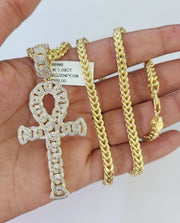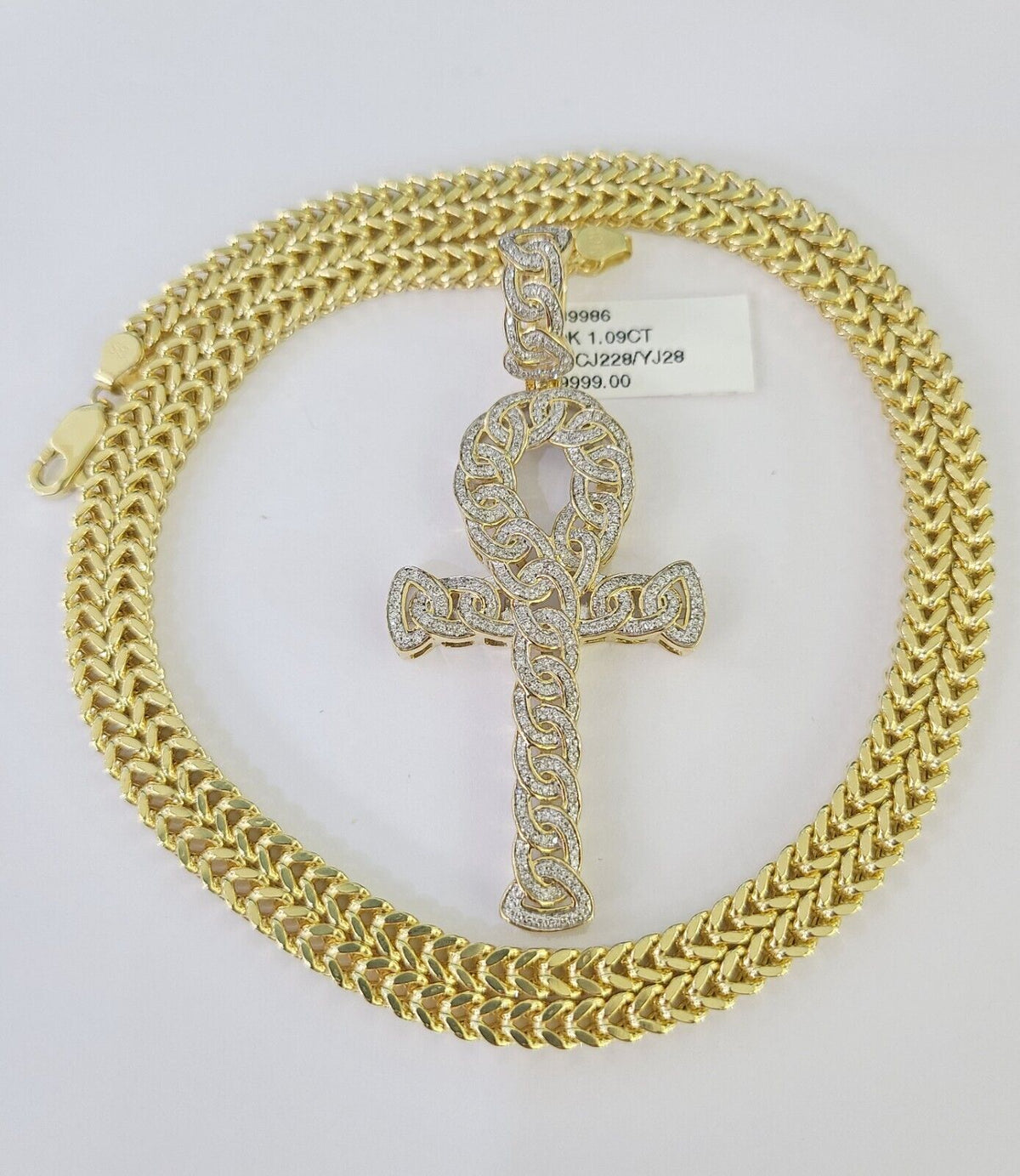 Is Presenting You with This Absolutely Stunning Real 10k Yellow Gold Franco Chain 4mm, 20-28 Inches Lobster Lock with Diamond Jesus Cross Pendant. The links are 10K GOLD and are very strong. 24"A18B0