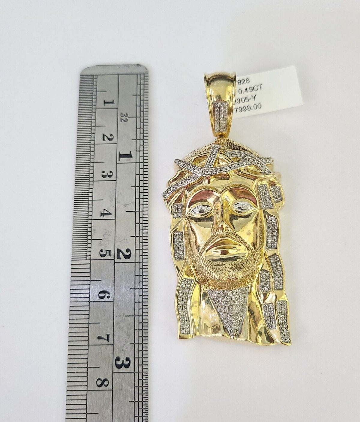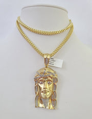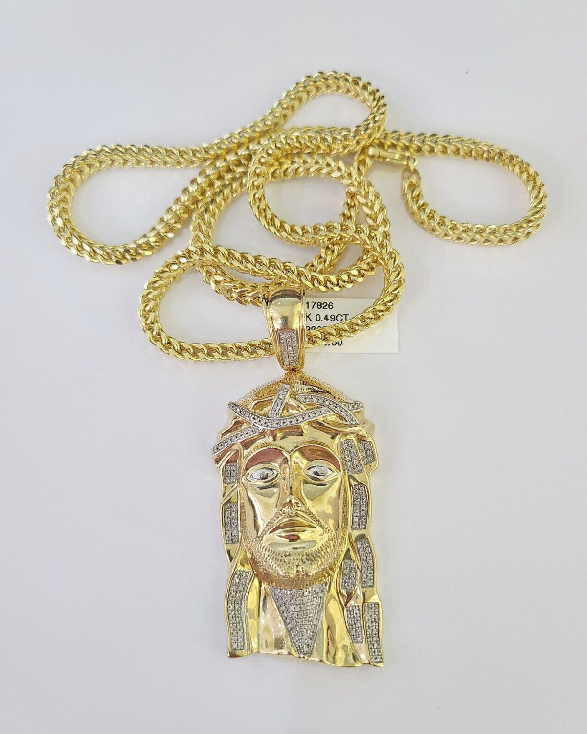Is Presenting You with This Absolutely Stunning Real 10k Yellow Gold Franco Chain 4mm, 20-28 Inches Lobster Lock with Diamond Jesus Head Pendant. The links are 10K GOLD and are very strong. 24"A18B0