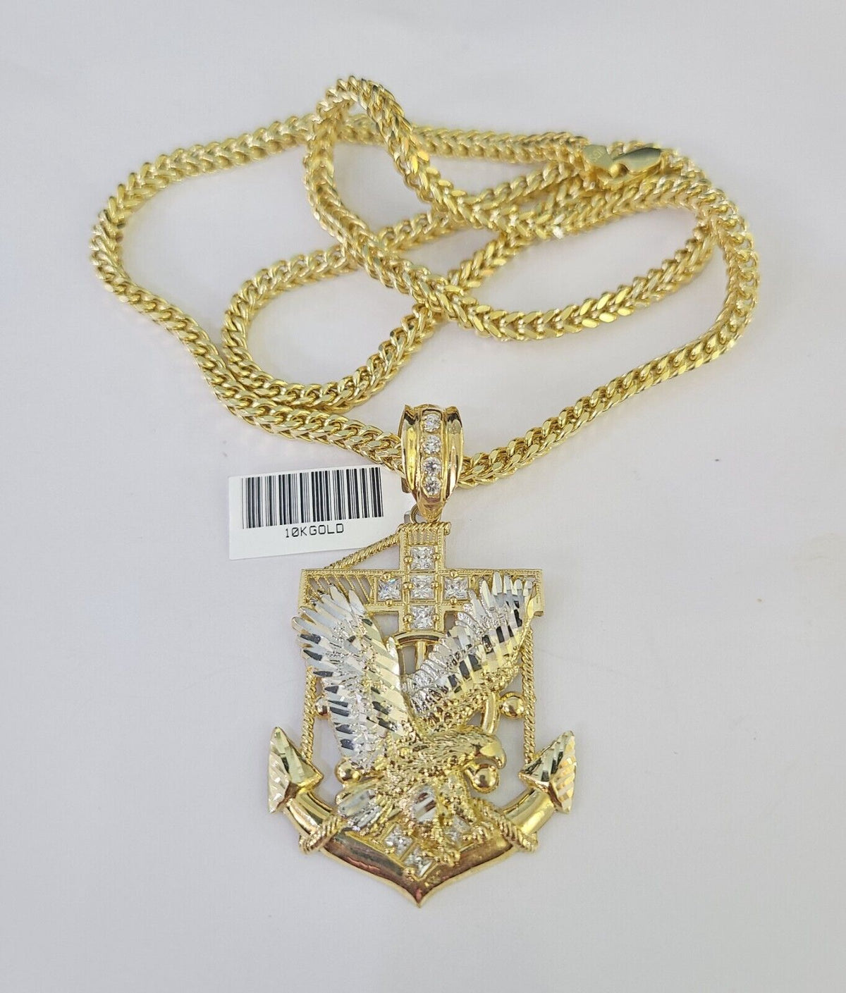 Is Presenting You with This Absolutely Stunning Real 10k Yellow Gold Franco Chain 4mm, 20-28 Inches Lobster Lock with Eagle Anchor Pendant. The links are 10K GOLD and are very strong. 24"A18B0 A7B9