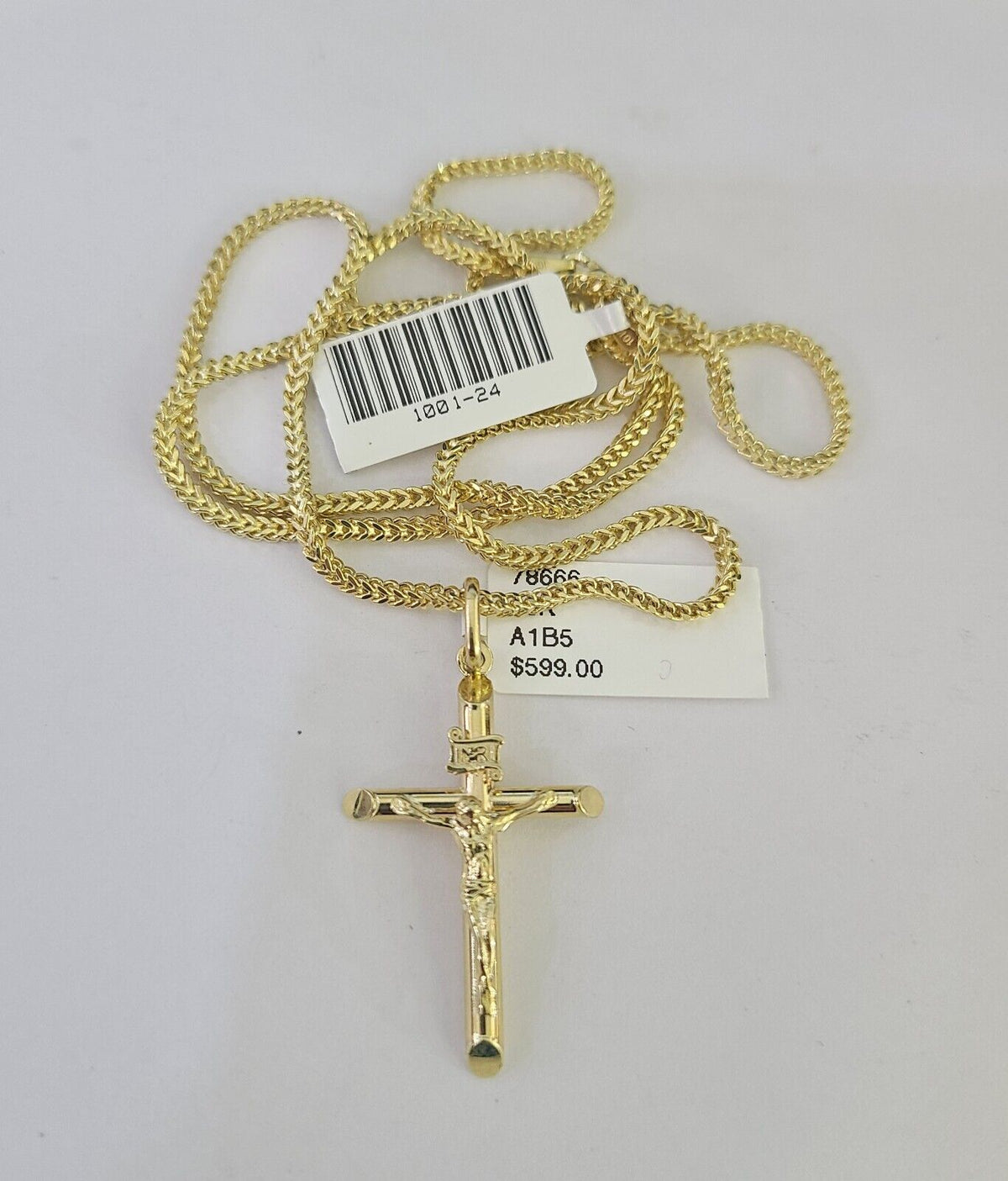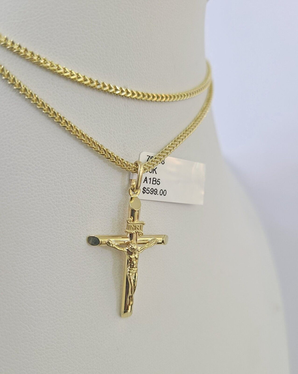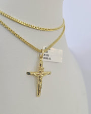 Is Presenting You with This Absolutely Stunning Real 10k Yellow Gold Franco Chain 2mm, 16-24 Inches Lobster Lock with INRI Jesus Cross Pendant. The links are 10K GOLD and are very strong. 22"A3B8 A1B5