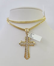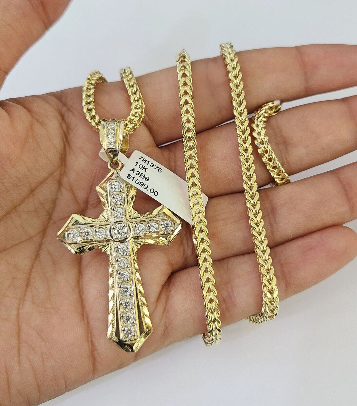 Is Presenting You with This Absolutely Stunning Real 10k Yellow Gold Franco Chain 3mm, 20-26 Inches Lobster Lock with Jesus Cross Pendant. The links are 10K GOLD and are very strong. 20"A9B8 A3B8