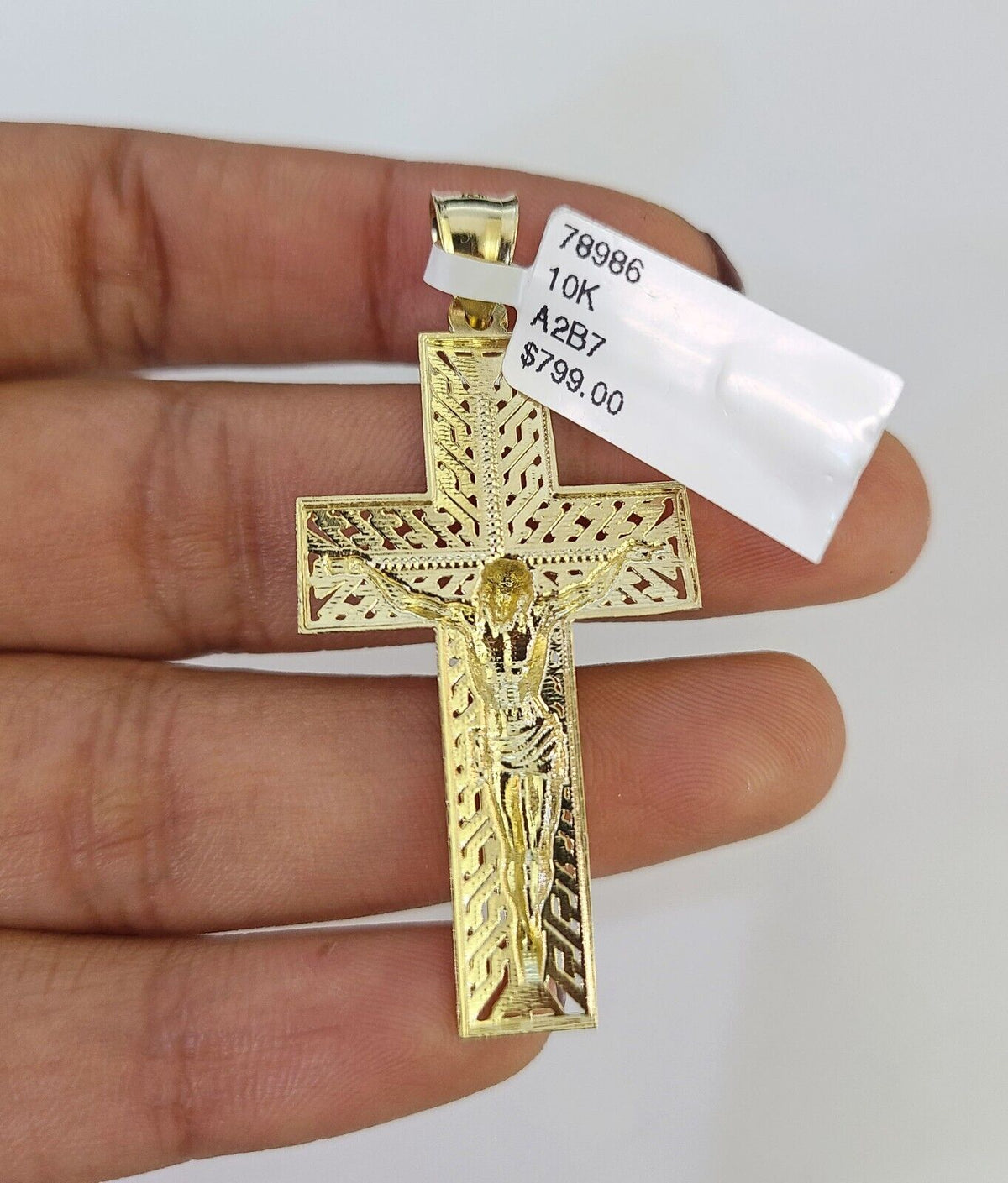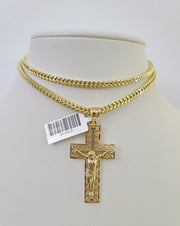 Is Presenting You with This Absolutely Stunning Real 10k Yellow Gold Franco Chain 3mm, 20-26 Inches Lobster Lock with Jesus Cross Pendant. The links are 10K GOLD and are very strong. 20"A9B8 A2B7