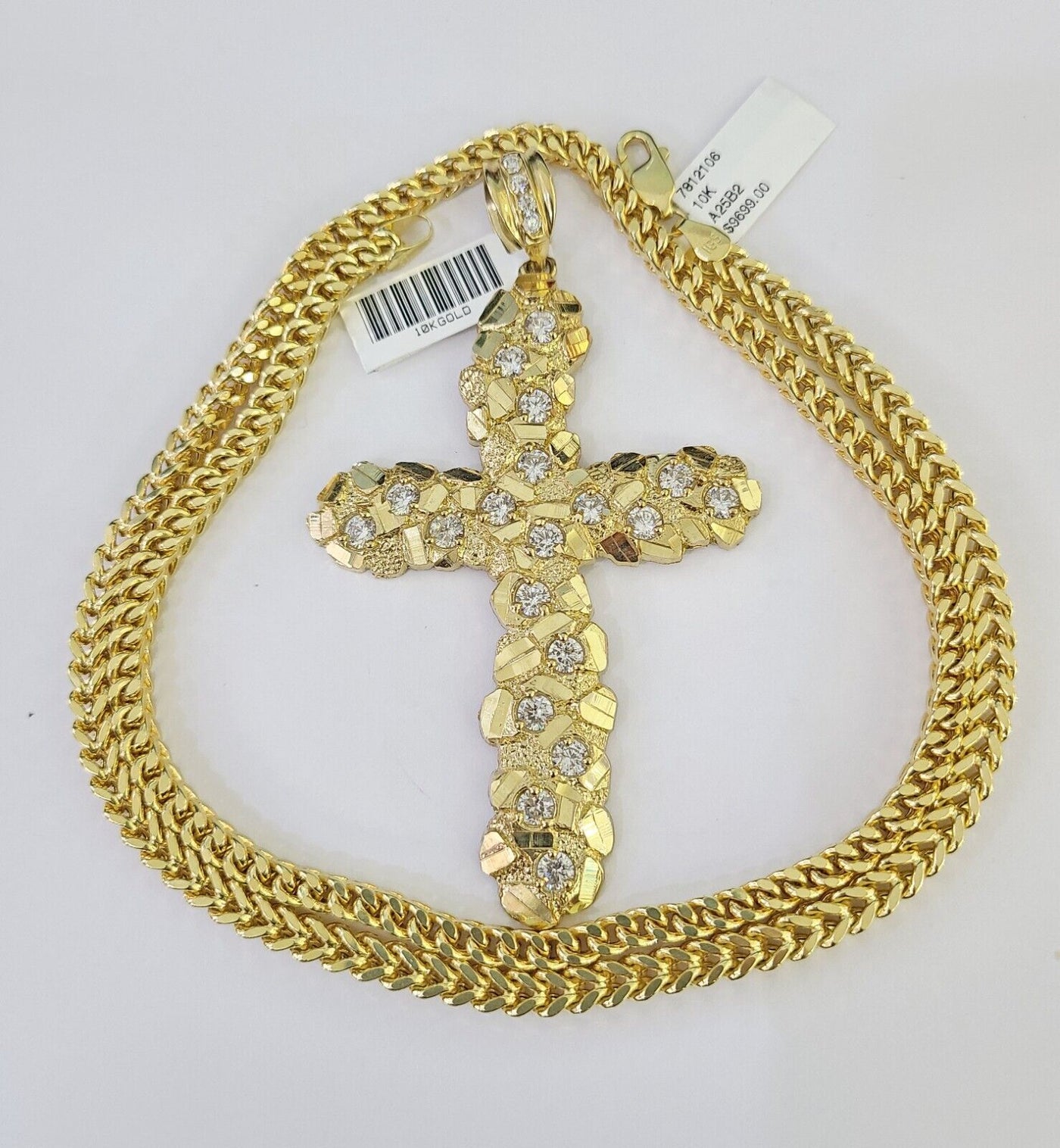 10K Franco Chain Jesus Cross Pendant Charm Necklace 20"-26" 5mm Gold Yellow SET