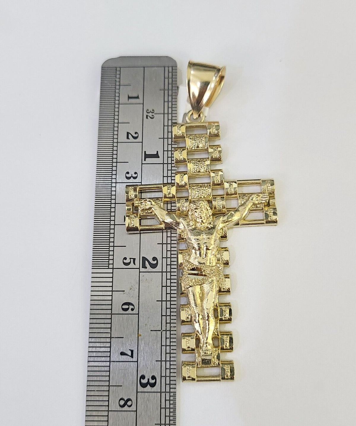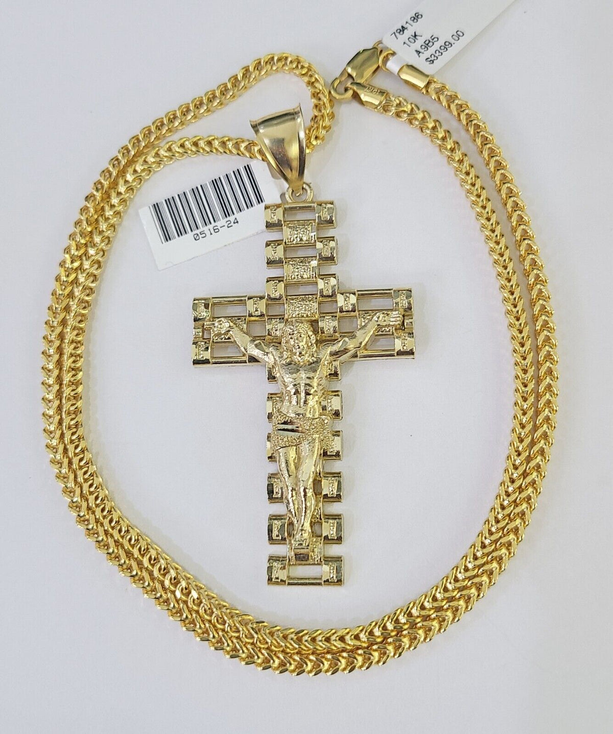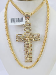 Is Presenting You with This Absolutely Stunning Real 10k Yellow Gold Franco Chain 3mm, 20-26��Inches��Lobster Lock��with Jesus Crucifix Cross Pendant. The links are 10K GOLD and are very strong. 22"A9B5��A8B2