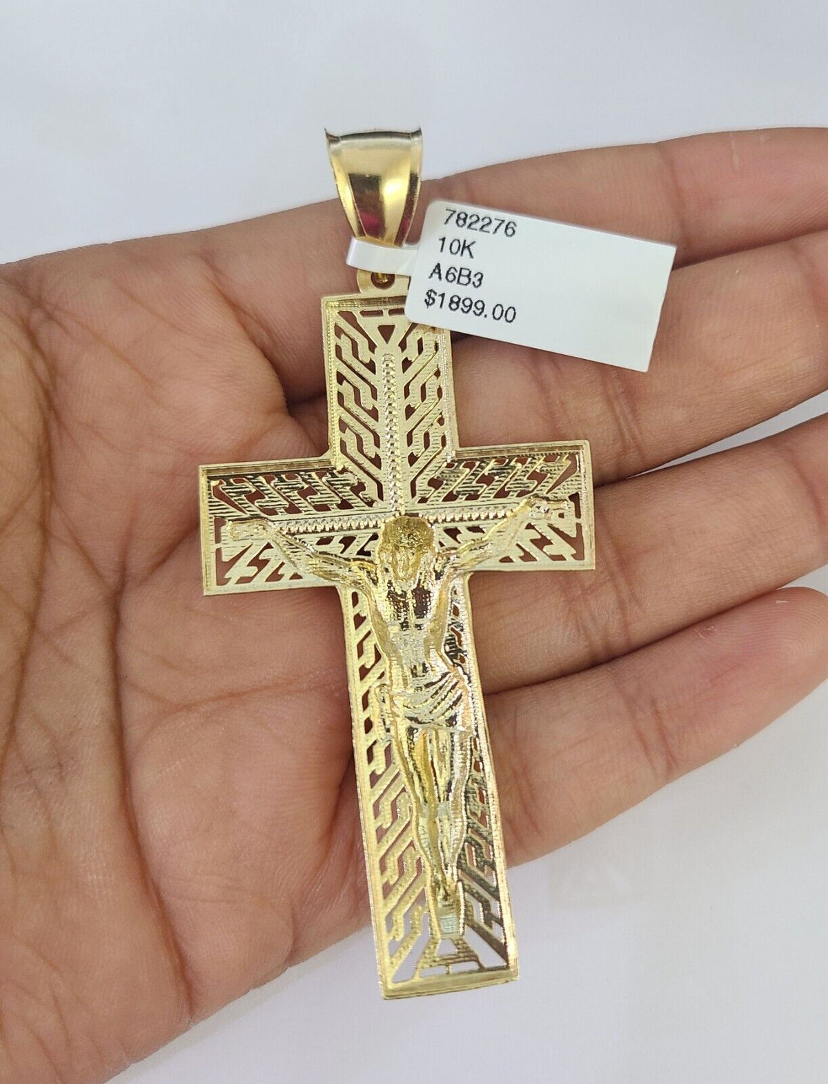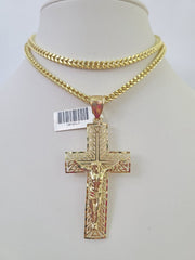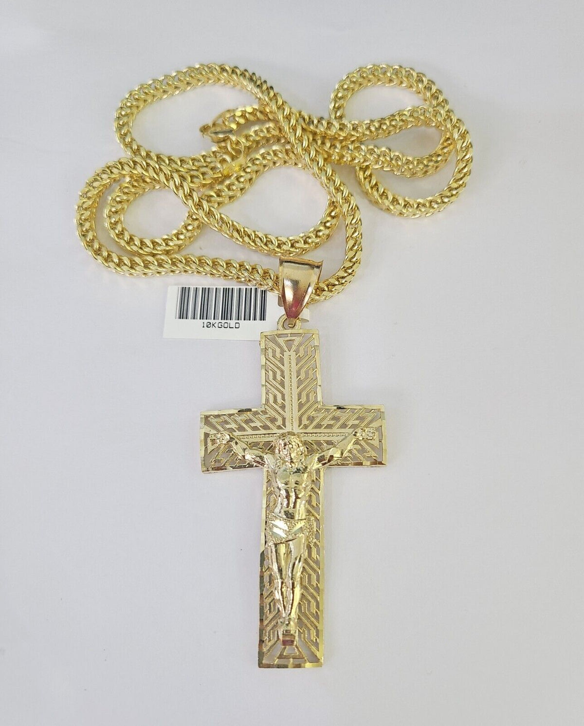Is Presenting You with This Absolutely Stunning Real 10k Yellow Gold Franco Chain 4mm, 20-28 Inches Lobster Lock with Jesus Crucifix Cross Pendant. The links are 10K GOLD and are very strong. 24"A18B0 A6B3