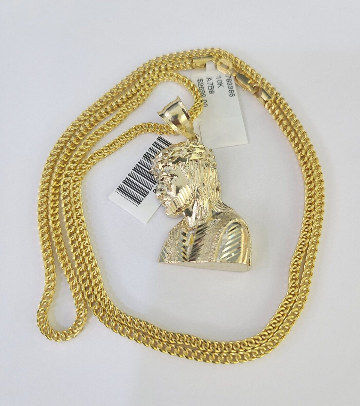 Is Presenting You with This Absolutely Stunning Real 10k Yellow Gold Franco Chain 2.5mm, 20-26��Inches��Lobster Lock��with Jesus Head Pendant. The links are 10K GOLD and are very strong. 24"A7B8��A4B2