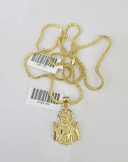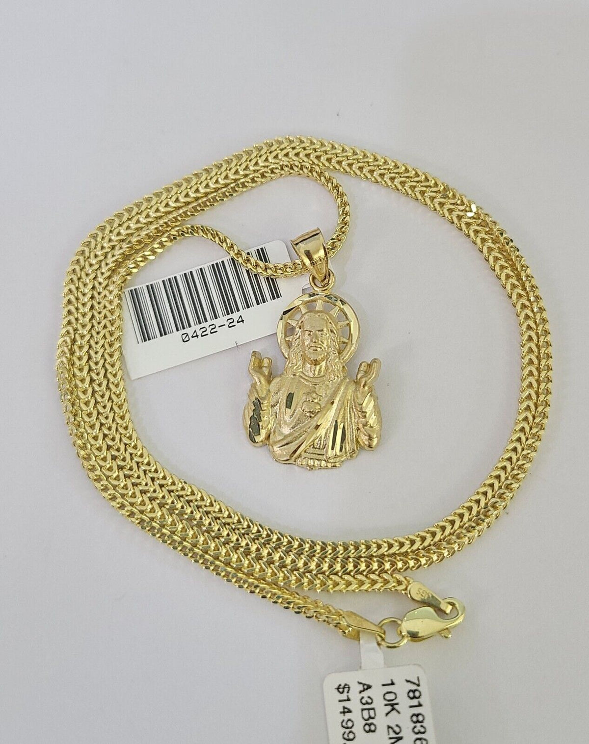 Is Presenting You with This Absolutely Stunning Real 10k Yellow Gold Franco Chain 2mm, 16-24 Inches Lobster Lock with Jesus Pendant. The links are 10K GOLD and are very strong. 22"A3B8 A1B8 P3735