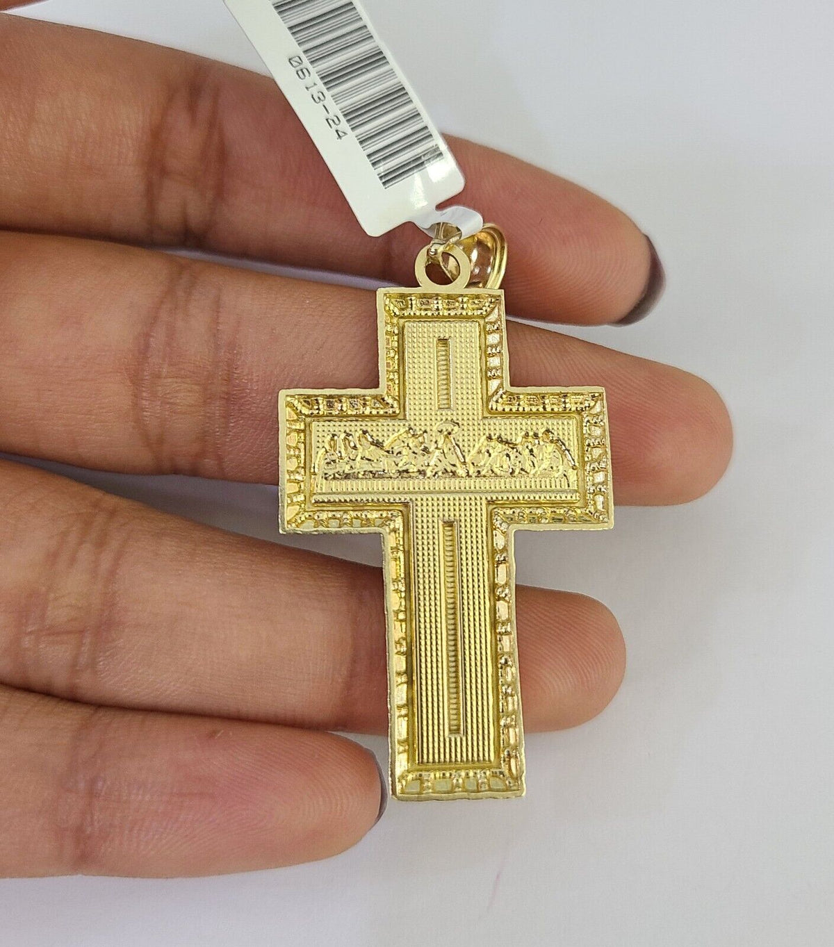 10K Franco Chain Last Supper Cross Pendant Charm Necklace 20"-26" 3mm Gold SET - 20" chain with charm