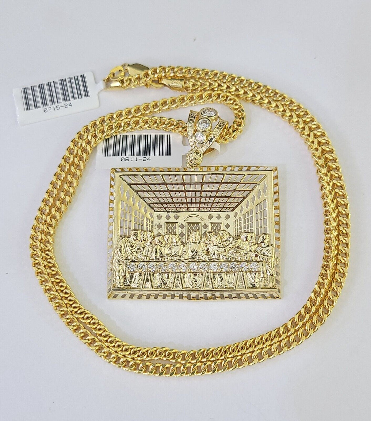 Is Presenting You with This Absolutely Stunning Real 10k Yellow Gold Franco Chain 3mm, 20-26��Inches��Lobster Lock��with Last Supper Pendant. The links are 10K GOLD and are very strong. 22"A9B5��A9B9