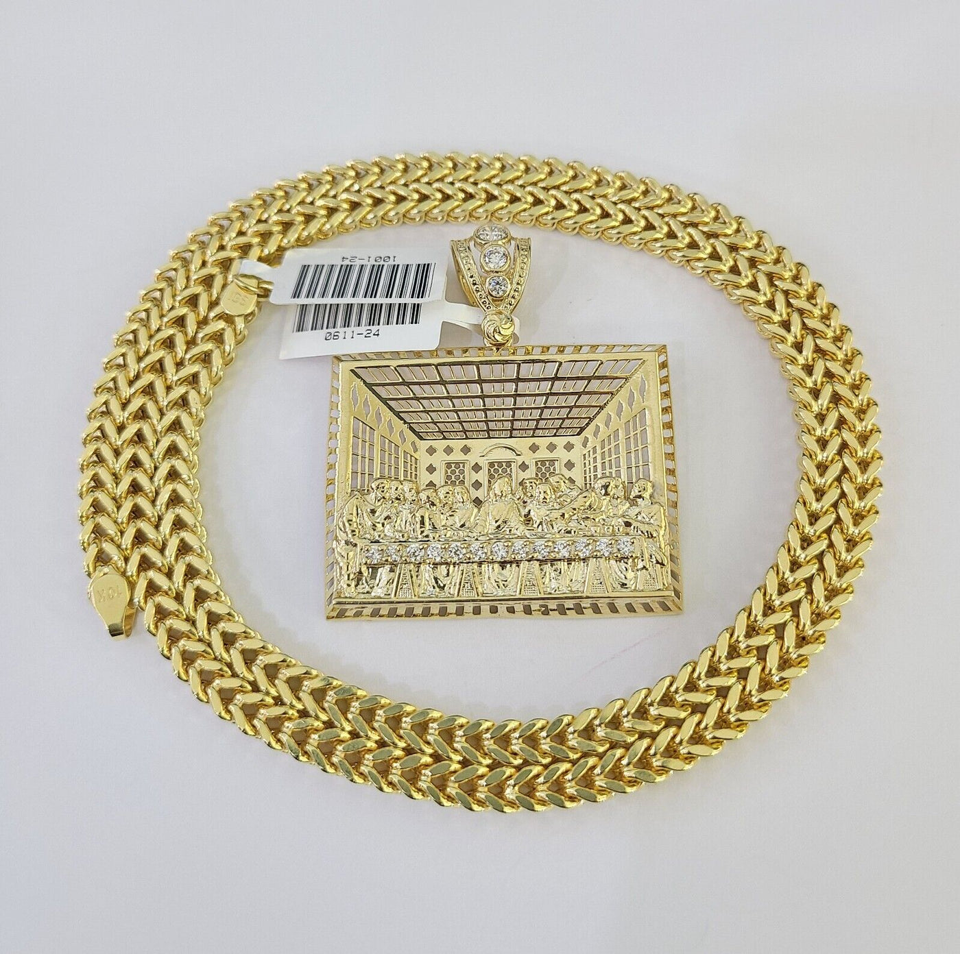 Is Presenting You with This Absolutely Stunning Real 10k Yellow Gold Franco Chain 5mm, 20-26 Inches Lobster Lock with Last Supper Pendant. The links are 10K GOLD and are very strong. 24"A25B2 A10B0