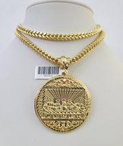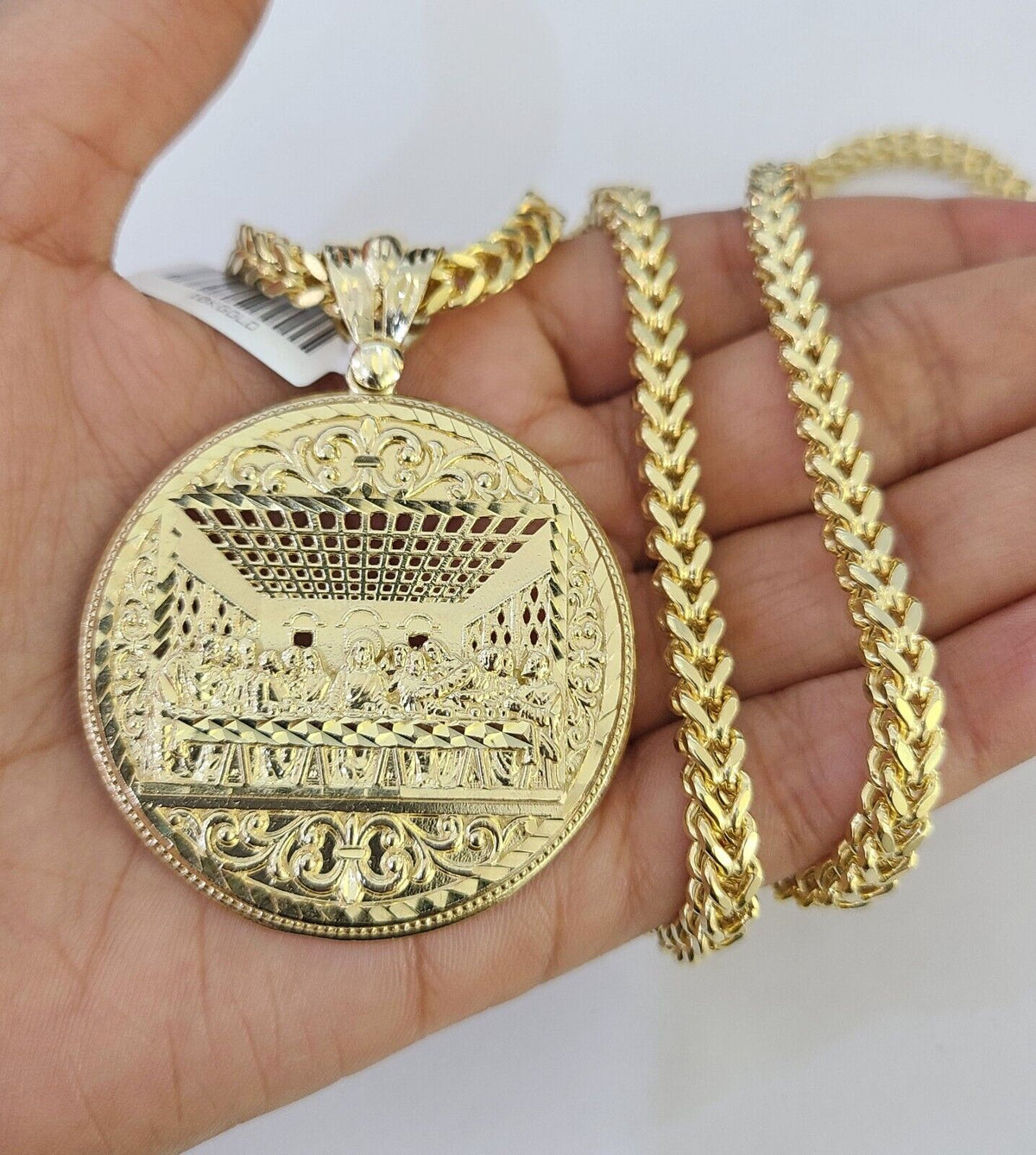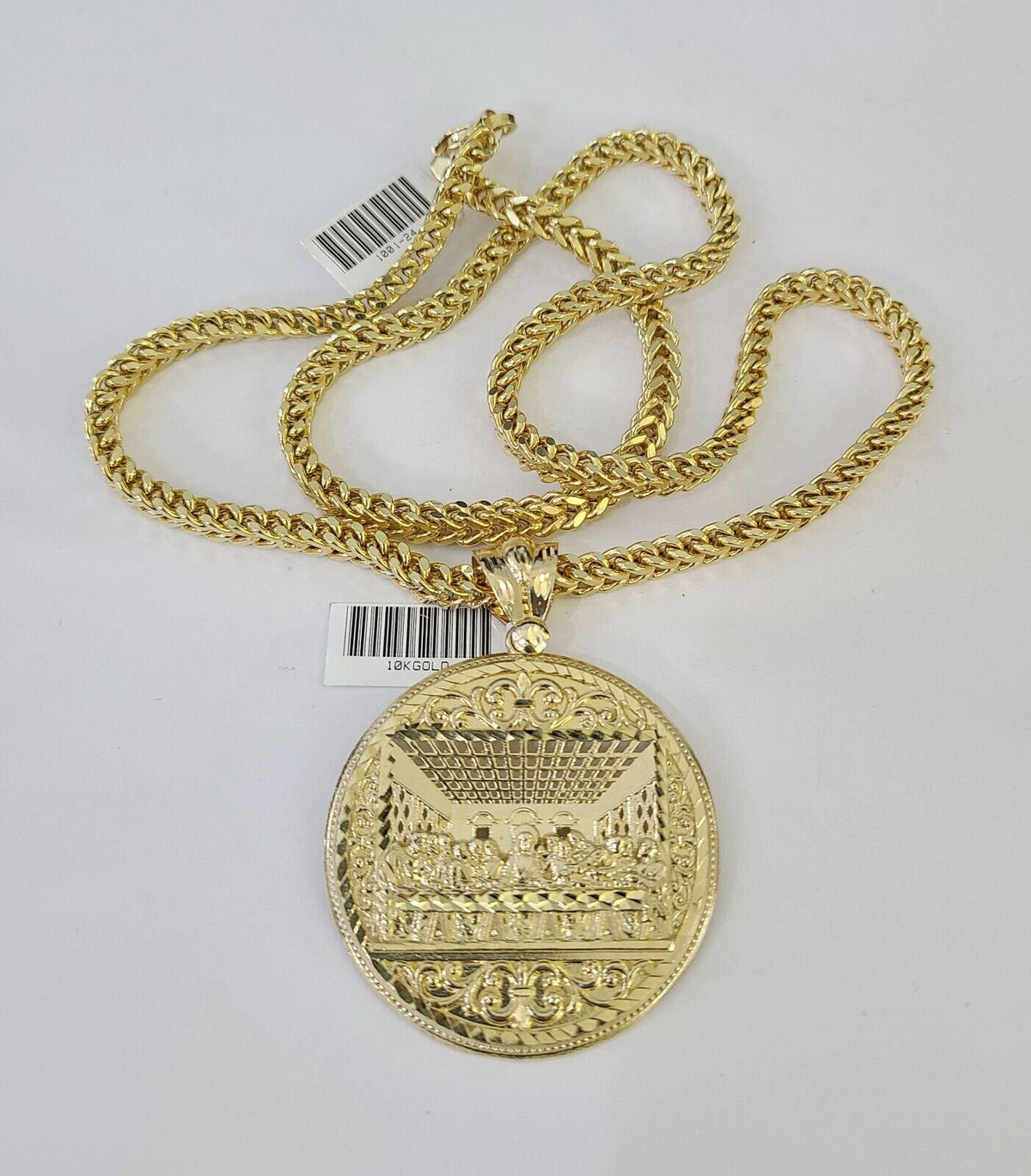 Is Presenting You with This Absolutely Stunning Real 10k Yellow Gold Franco Chain 5mm, 20-26 Inches Lobster Lock with Last Supper Pendant. The links are 10K GOLD and are very strong. 24"A25B2 A11B2