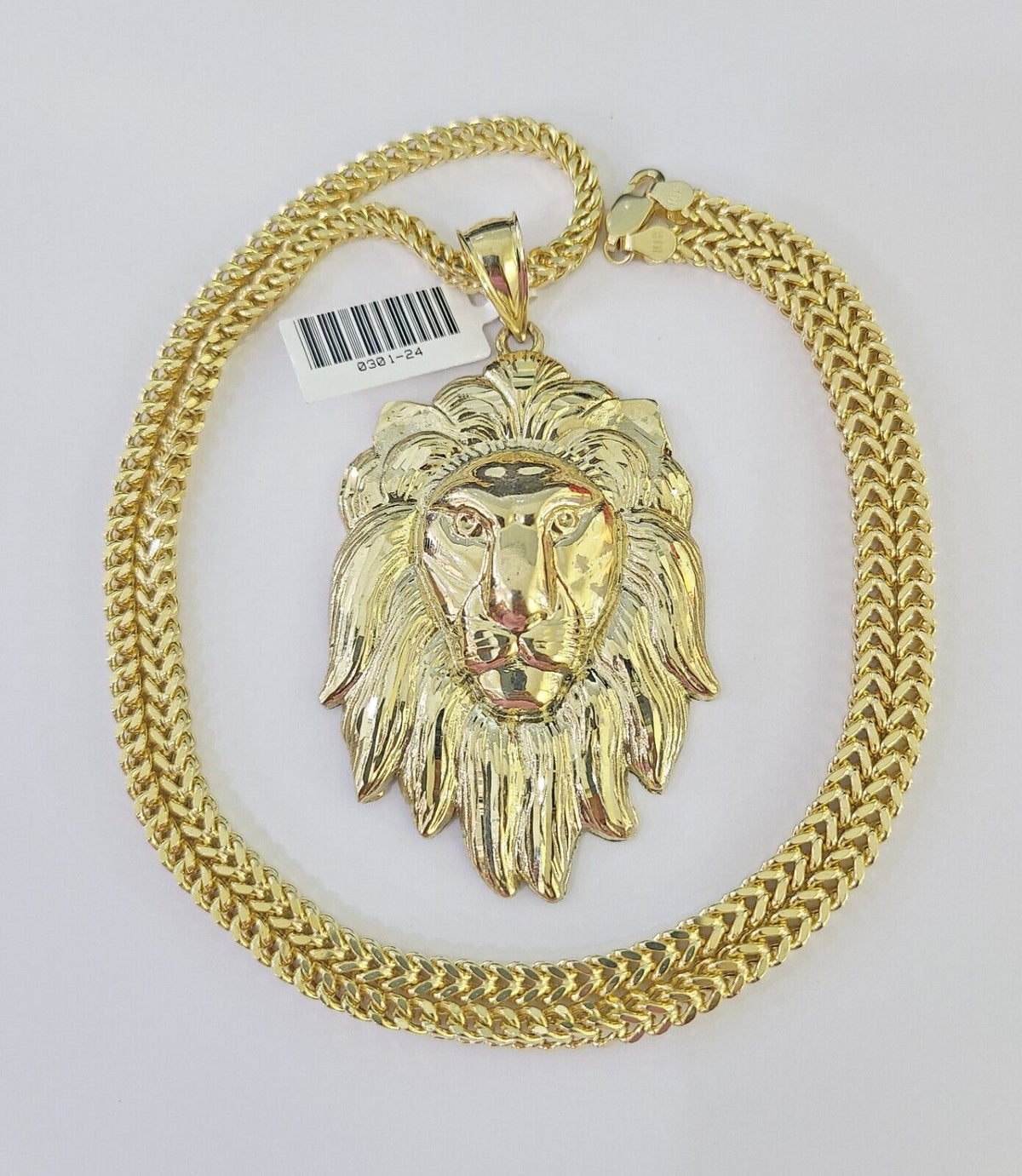 Is Presenting You with This Absolutely Stunning Real 10k Yellow Gold Franco Chain 4mm, 20-28 Inches Lobster Lock with Lion Pendant. The links are 10K GOLD and are very strong. 24"A18B0 A16B1