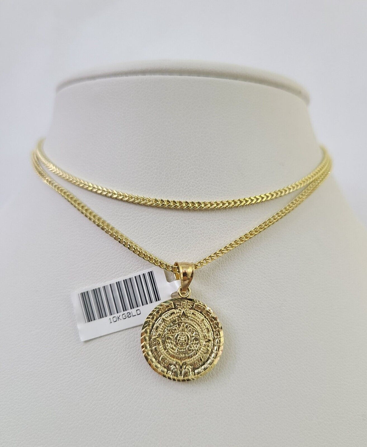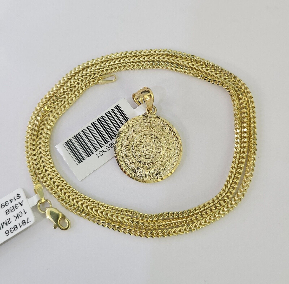 Is Presenting You with This Absolutely Stunning Real 10k Yellow Gold Franco Chain 2mm, 16-24 Inches Lobster Lock with Mayan Calendar Pendant. The links are 10K GOLD and are very strong. 22"A3B8 A1B7