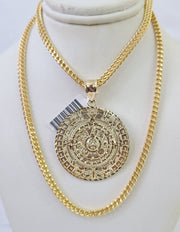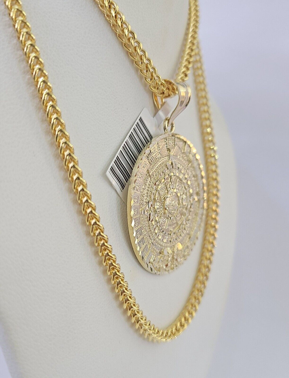 Is Presenting You with This Absolutely Stunning Real 10k Yellow Gold Franco Chain 3mm, 20-26��Inches��Lobster Lock��with Mayan Calendar Pendant. The links are 10K GOLD and are very strong. 22"A9B5��A5B9