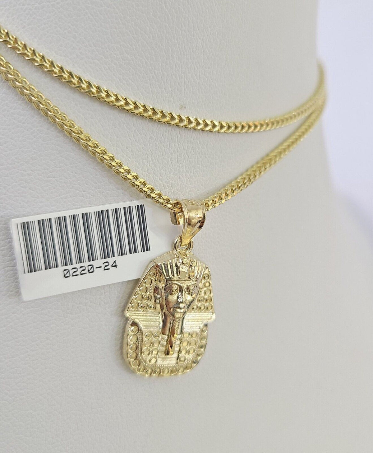 Is Presenting You with This Absolutely Stunning Real 10k Yellow Gold Franco Chain 2mm, 16-24 Inches Lobster Lock with Pharaoh Pendant. The links are 10K GOLD and are very strong. 22"A3B8 A1B3