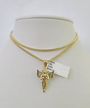 Is Presenting You with This Absolutely Stunning Real 10k Yellow Gold Franco Chain 2mm, 16-24 Inches Lobster Lock with Praying Angel Pendant. The links are 10K GOLD and are very strong. 22"A3B8 A1B3