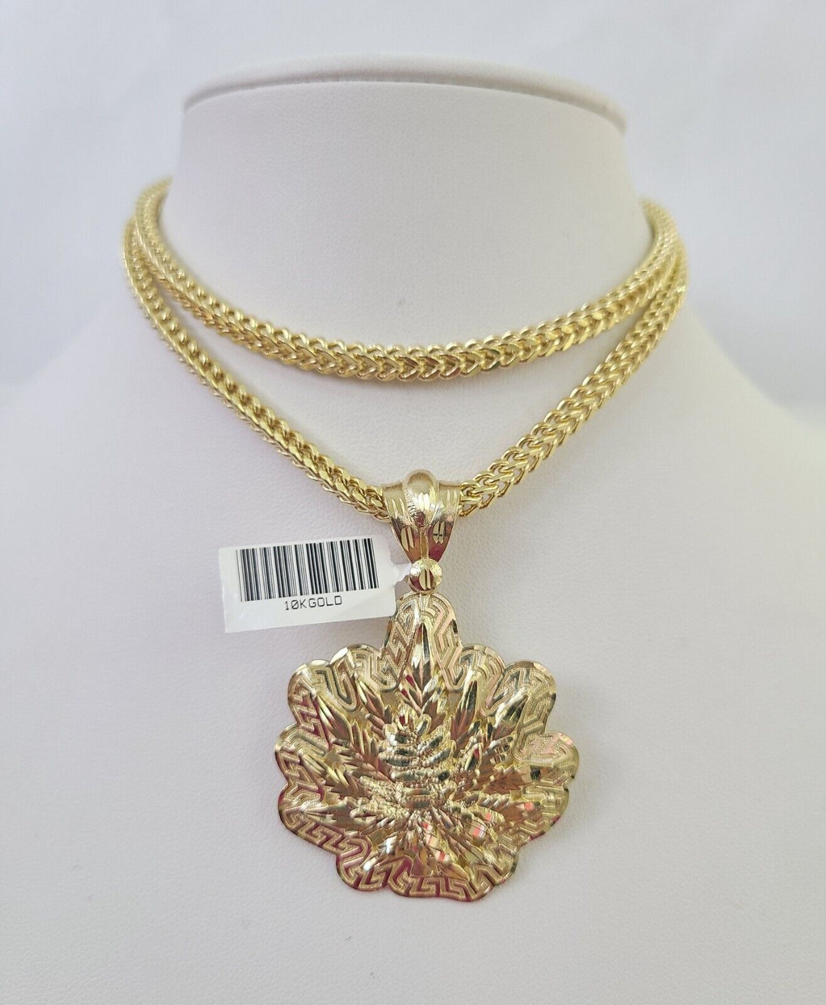 Is Presenting You with This Absolutely Stunning Real 10k Yellow Gold Franco Chain 4mm, 20-28 Inches Lobster Lock with Weed Leaf Pendant. The links are 10K GOLD and are very strong. 24"A18B0 A7B9