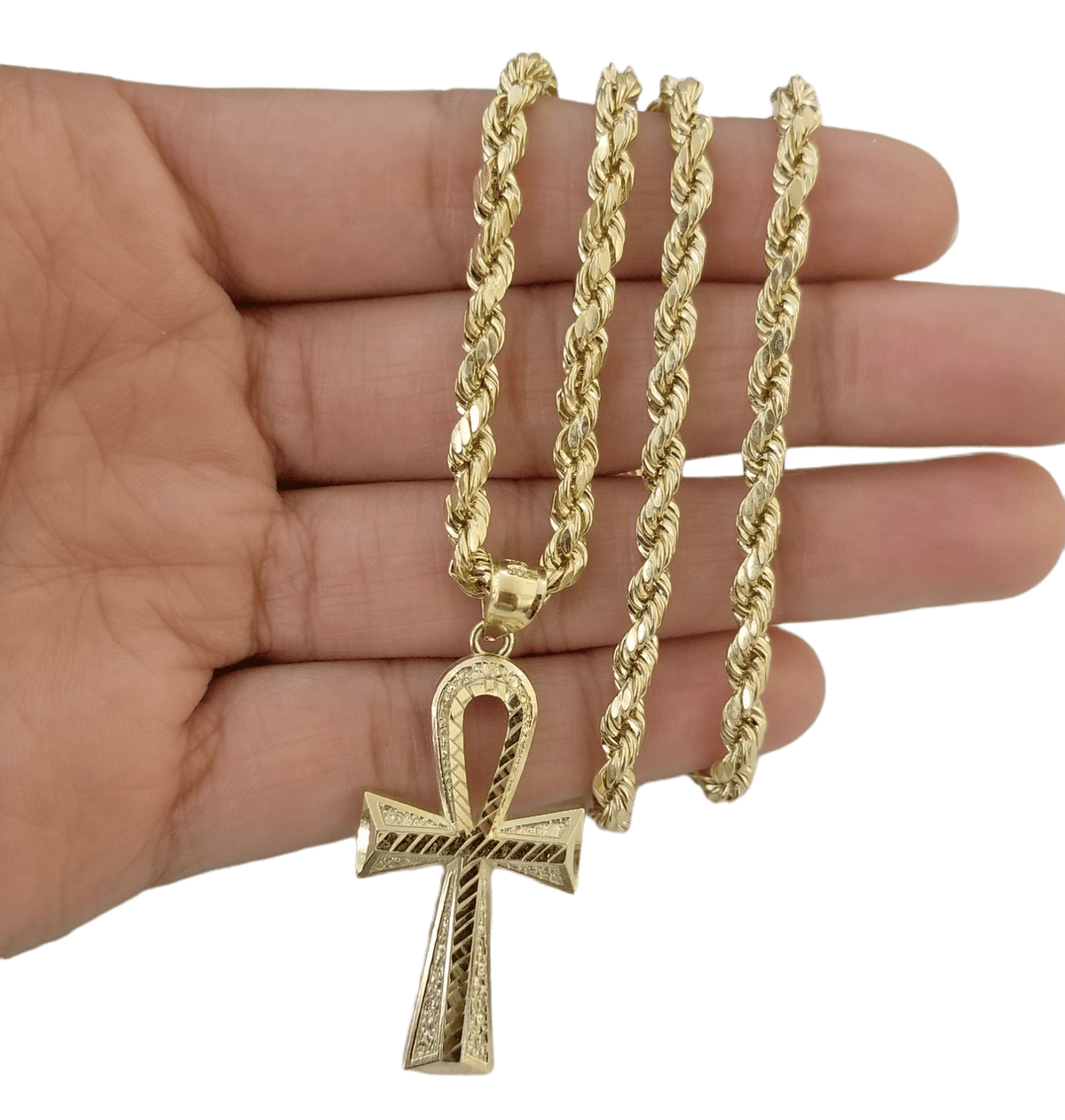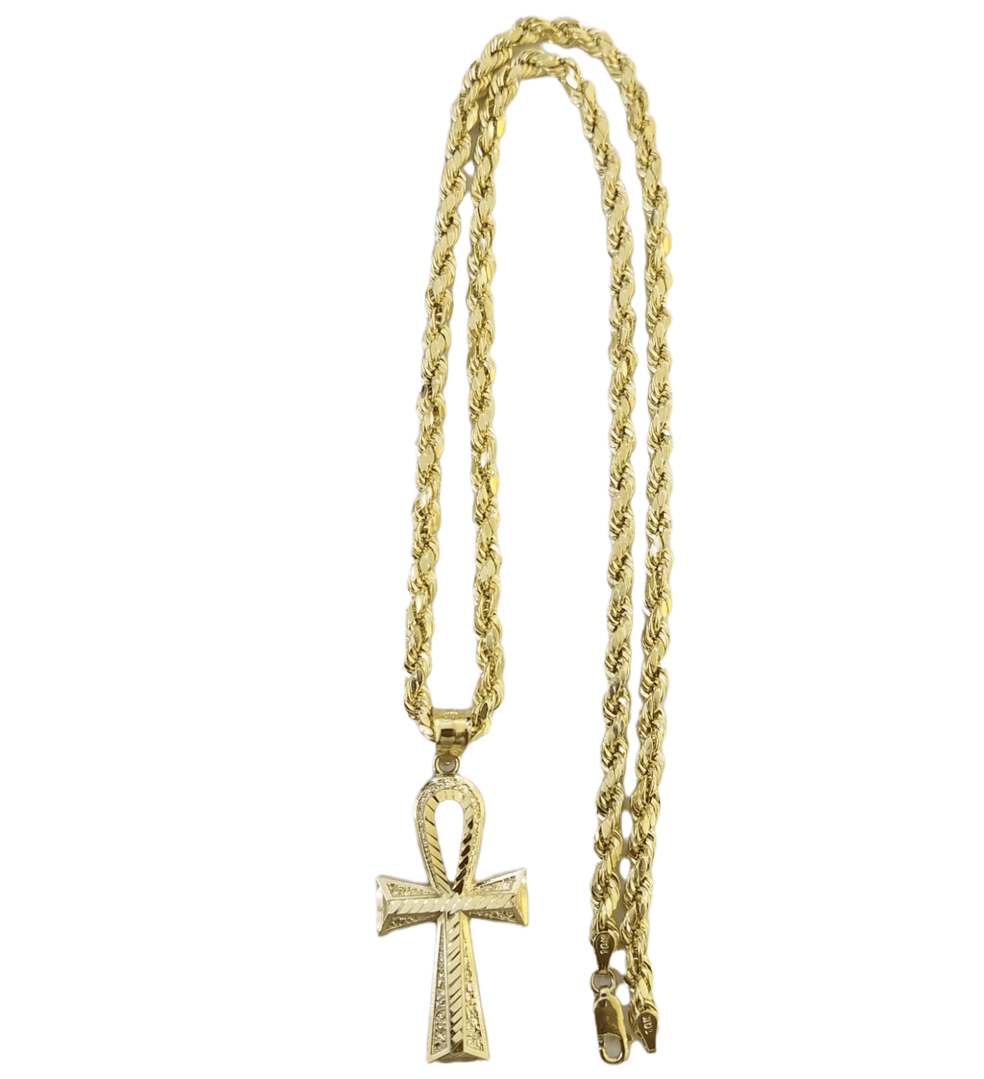 Is Presenting You with This Absolutely Stunning Real10K Gold Ankh Cross Egyptian Symbol Pendant Charm With 4mm Rope Chain��.These Beautiful Chain And Charm will not tarnish, discolor, or fade because they are Pure 10K Gold.��We also have them in various another sizes. Please feel free to contact us if you have any queries regarding the item.��