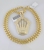 10k Gold Byzantine Box Necklace Crown Pendant Charm 20"-30" SET 4mm Chain