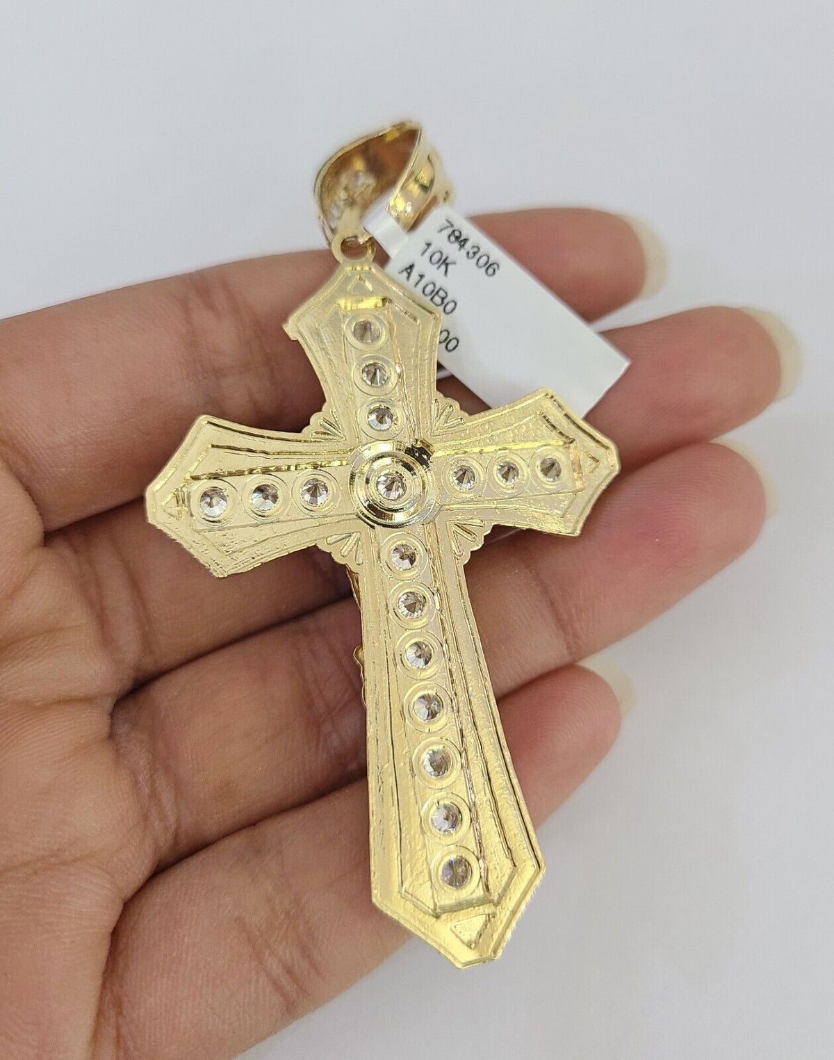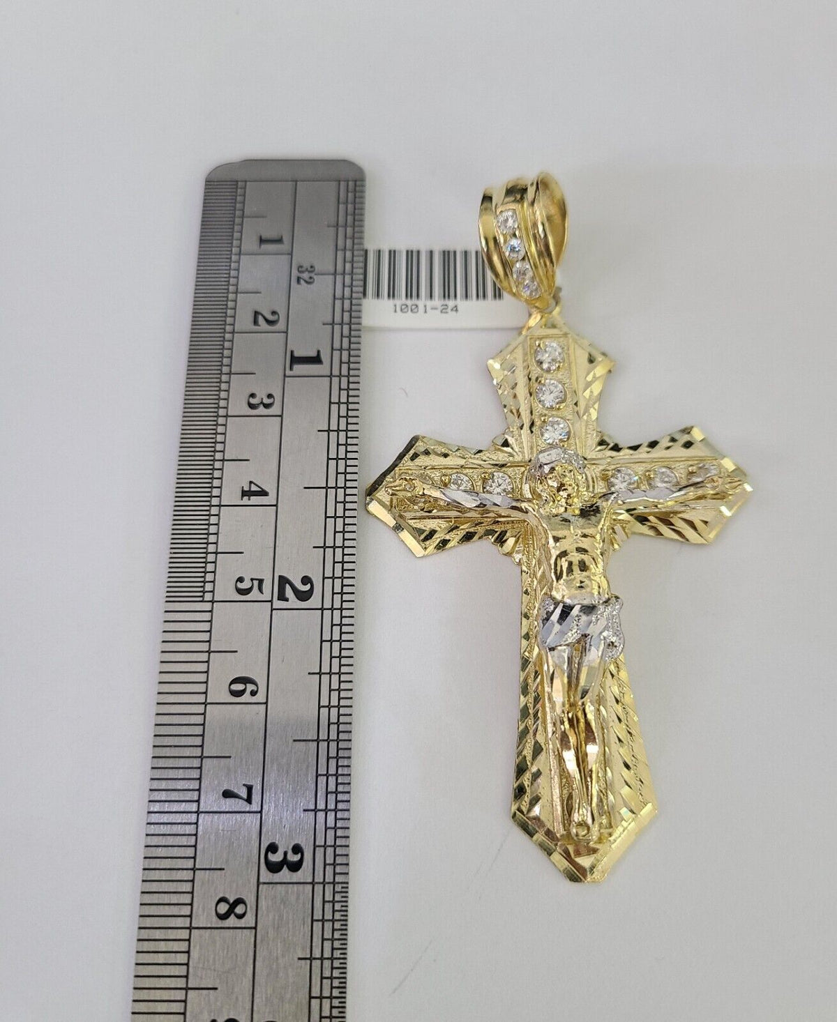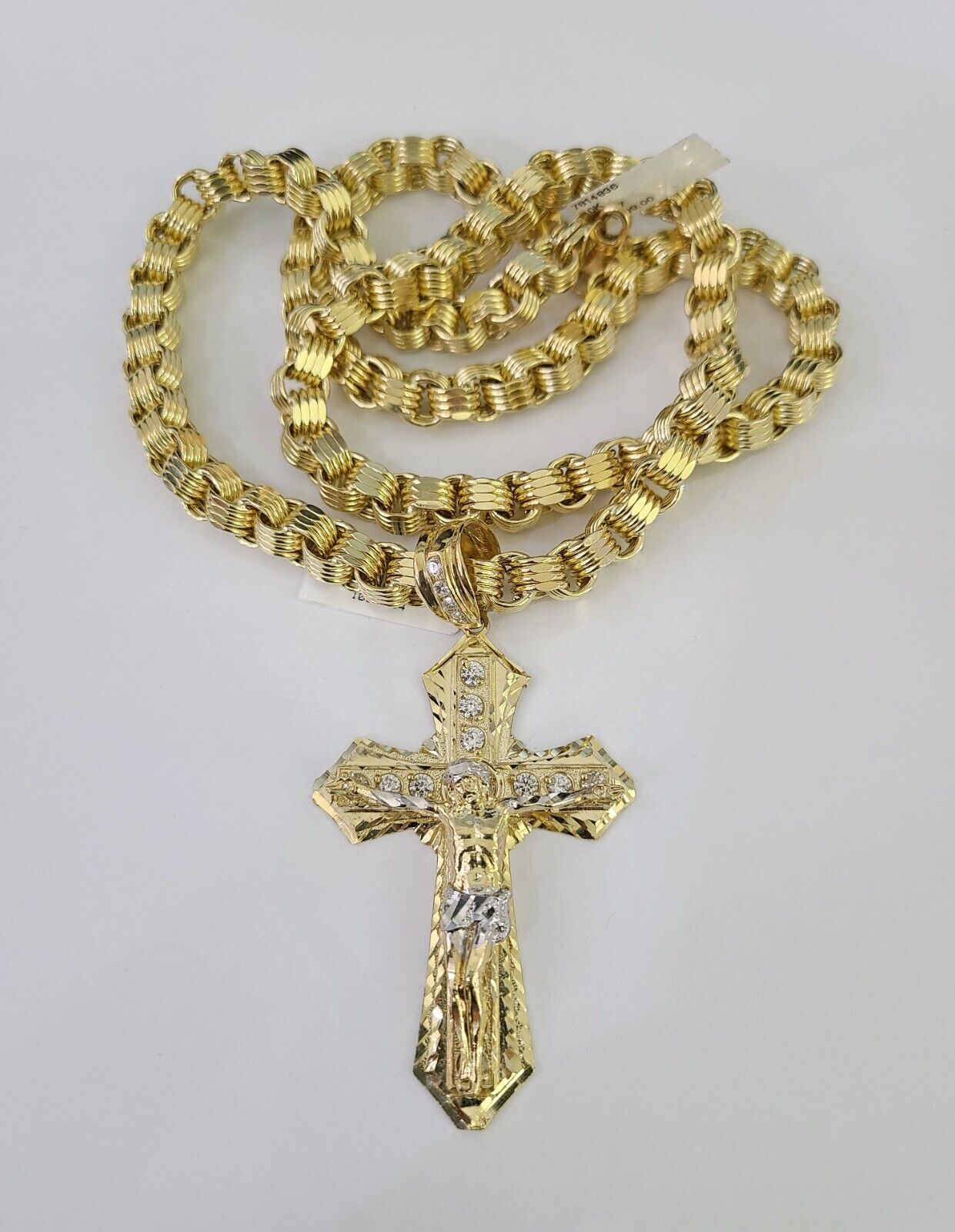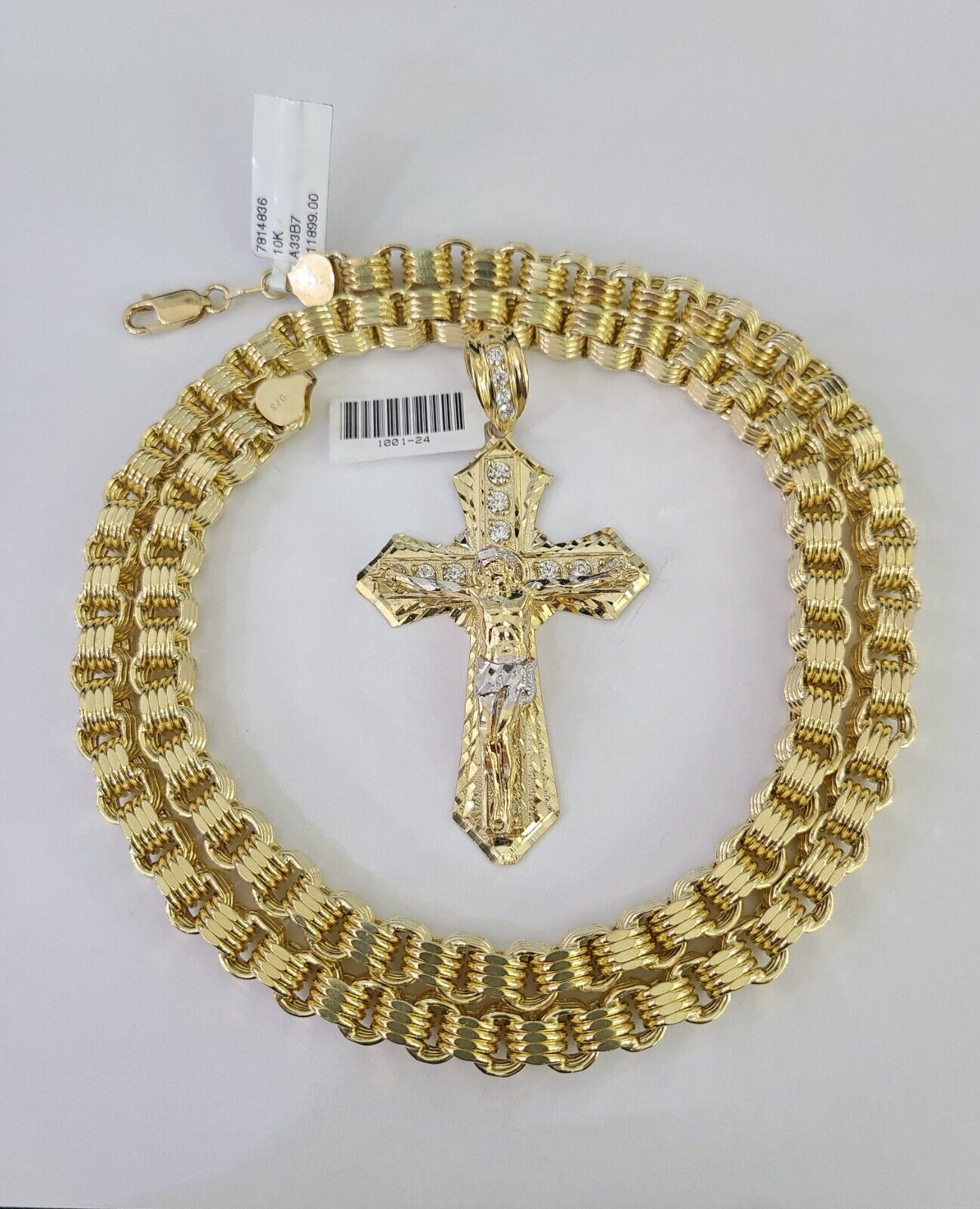 10k Gold Byzantine Chain Necklace Jesus Cross Pendant Charm SET 20"-30" 7.5mm