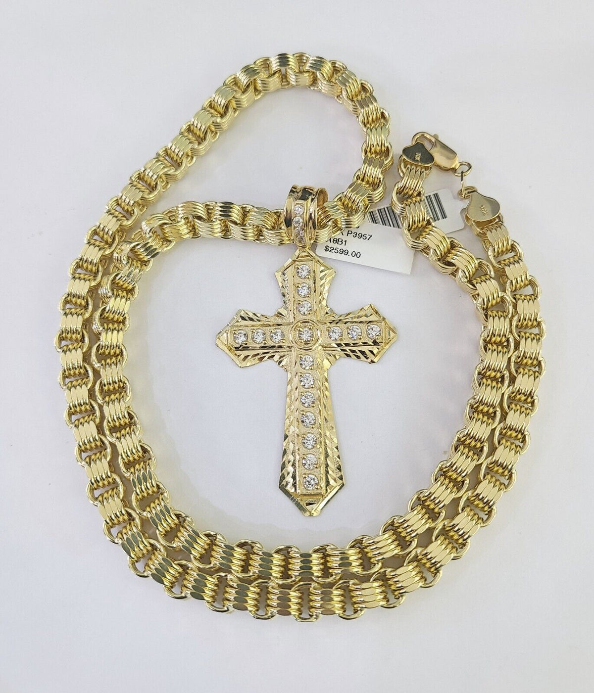 We present You with This Absolutely Stunning Real 10k Yellow Gold Byzantine Chain with Jesus Cross Charm Pendant. It has a detailed cut with a very good finish. These Beautiful Chain and Pendant will not tarnish, discolor, or fade because they are Pure 10K Gold. Please feel free to contact us if you have any queries regarding the item. 26''-A33B7 A8B1 P3957