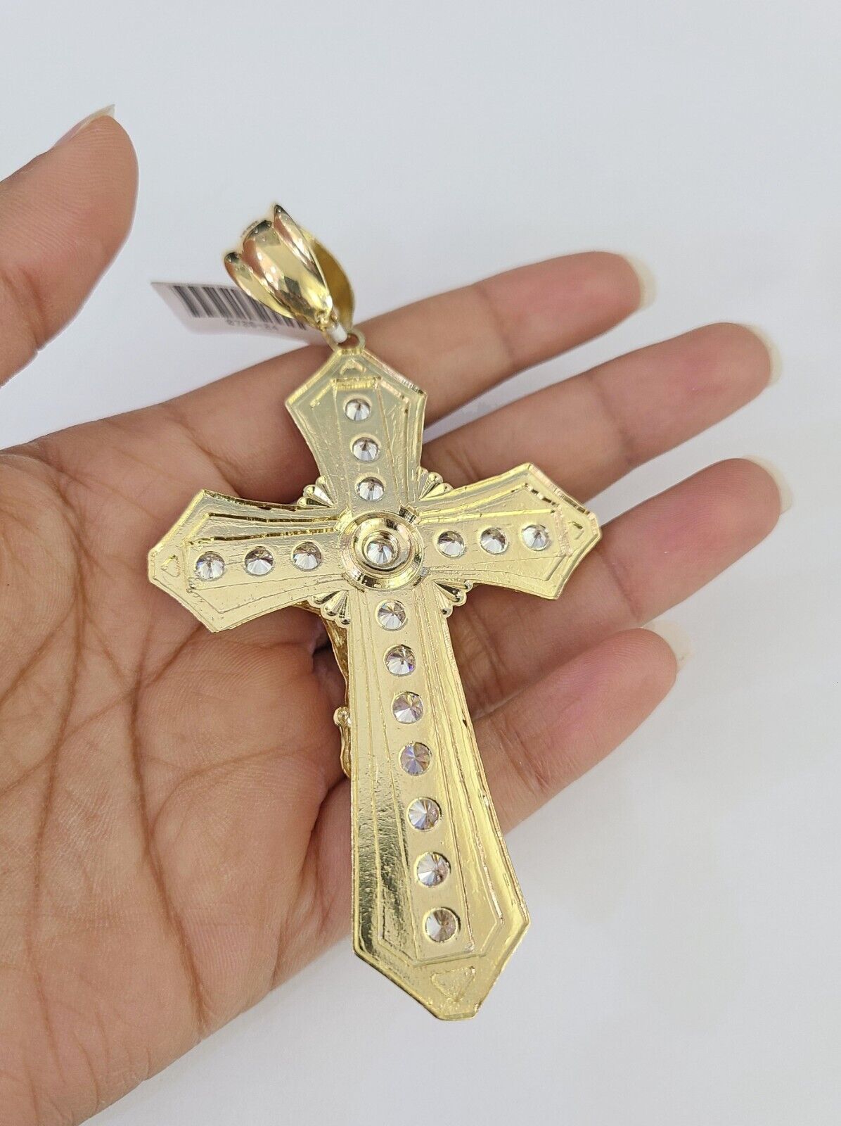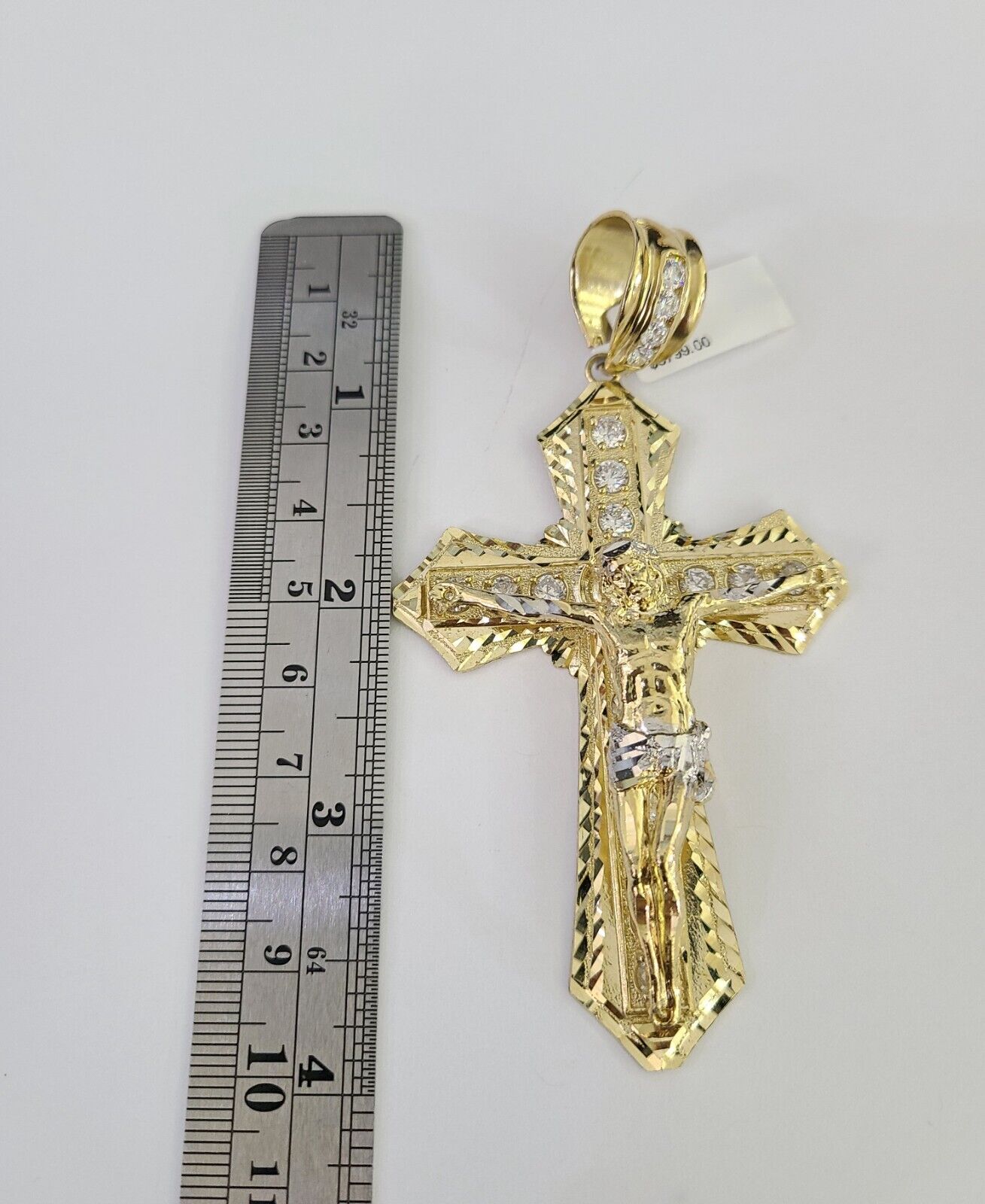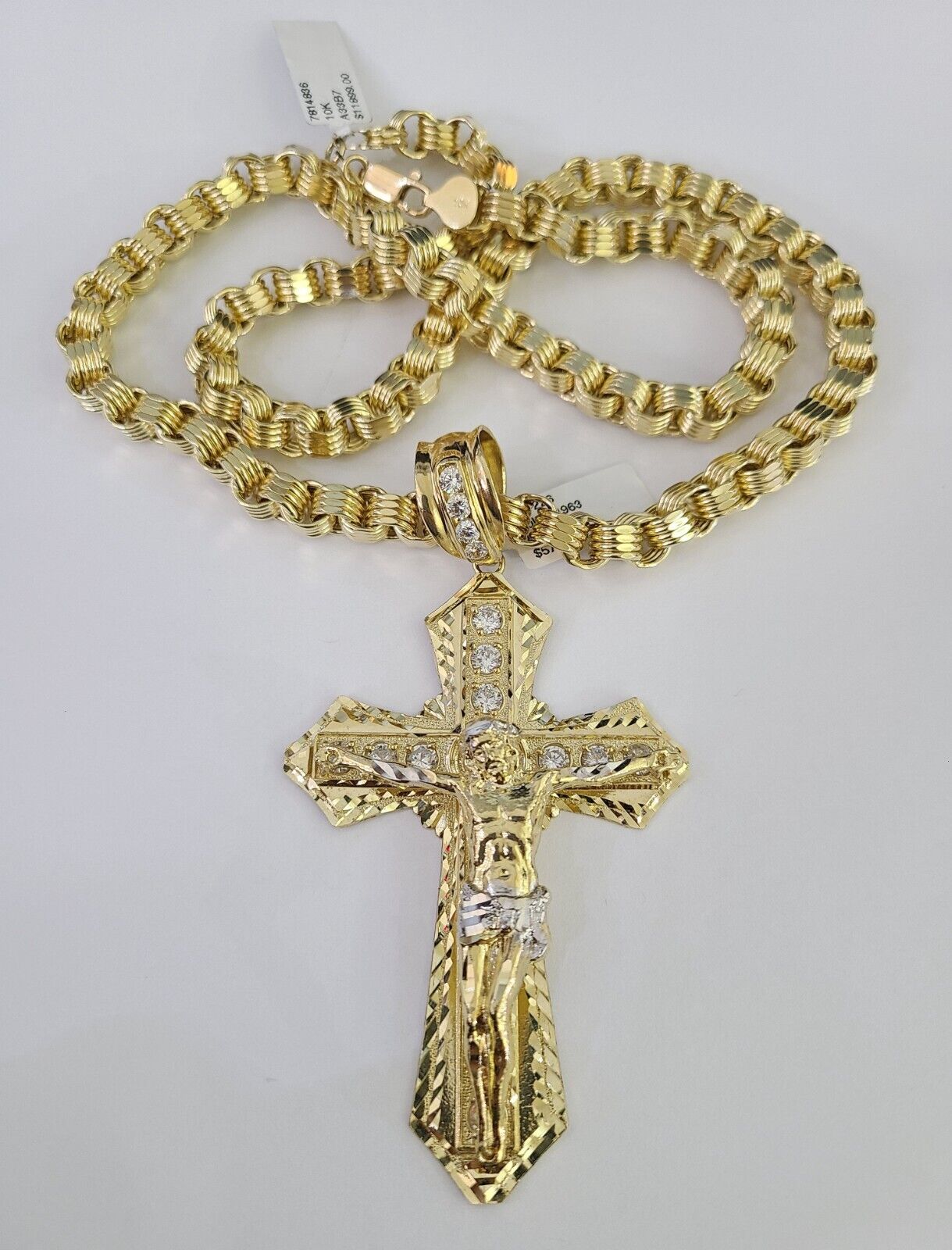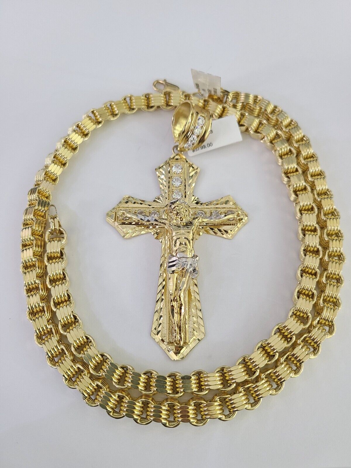 Real 10k Gold Box Byzantine Necklace Jesus Cross Charm Pendant SET Chain 20-30 Inch 7.5 mm
