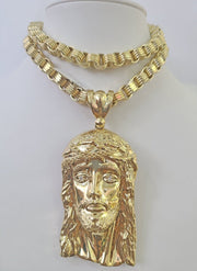 10k Gold Byzantine Necklace Jesus Head Charm 20-30 inches 9mm REAL SET Chain