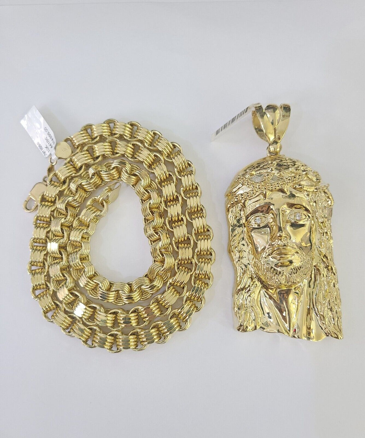 10k Gold Byzantine Necklace Jesus Head Charm 20-30 inches 9mm REAL SET Chain - 20" with Charm
