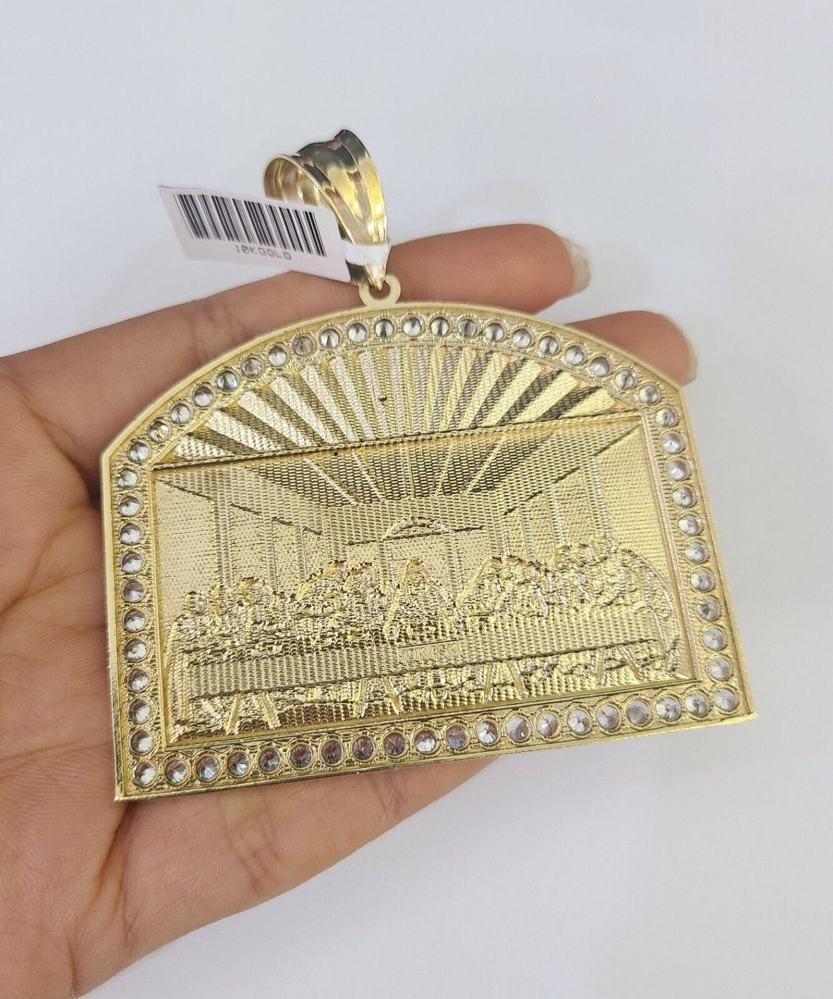 10k Gold Byzantine Necklace Last Supper Charm 20-30 inches 9mm REAL SET Chain - 20" with Charm