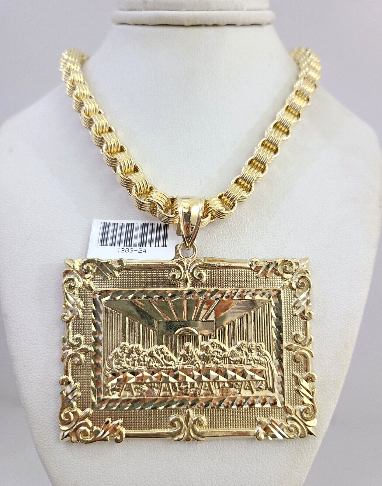10k Gold Byzantine Necklace Last Supper Pendant Charm 20"-30" SET 7mm Chain