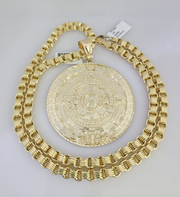 10k Gold Byzantine Necklace Mayan Calendar Pendant Charm 20"-30" SET 7mm Chain