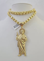 We present You with This Absolutely Stunning Real 10k Yellow Gold Byzantine Chain with Saint Jude Charm Pendant. It has a detailed cut with a very good finish. These Beautiful Chain and Pendant will not tarnish, discolor, or fade because they are Pure 10K Gold. Please feel free to contact us if you have any queries regarding the item. 26''-A33B7 A16B3