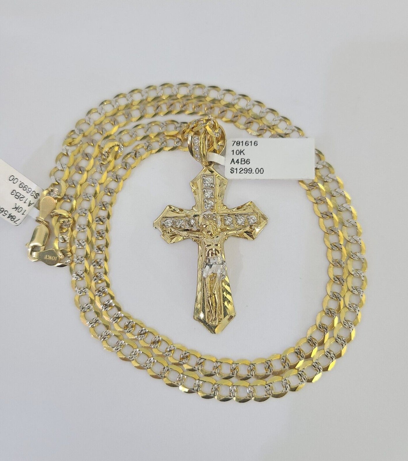 We present You with This Absolutely Stunning Real 10k Yellow Gold SOLID Cuban Curb link Chain Diamond Cut with Jesus...