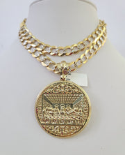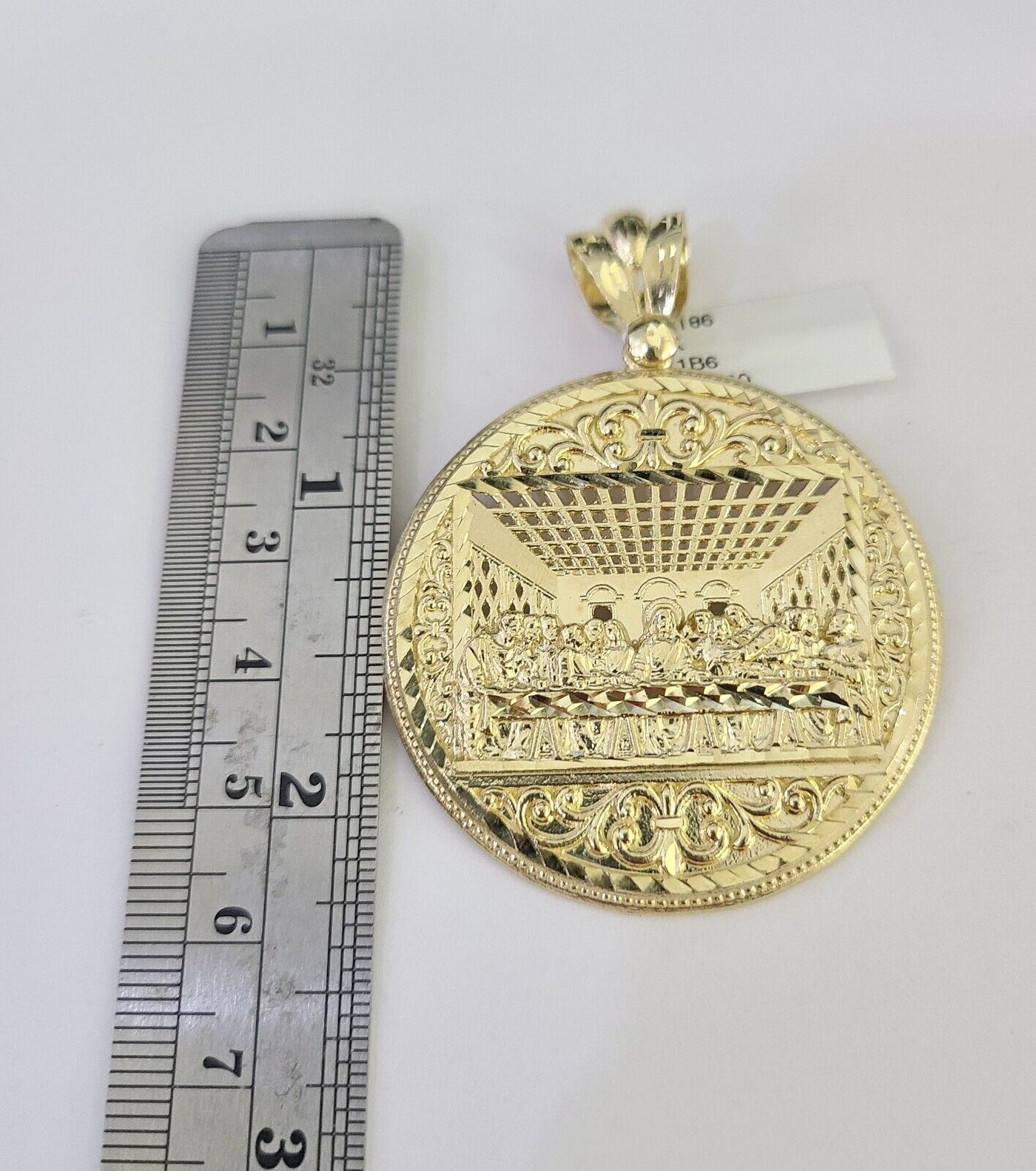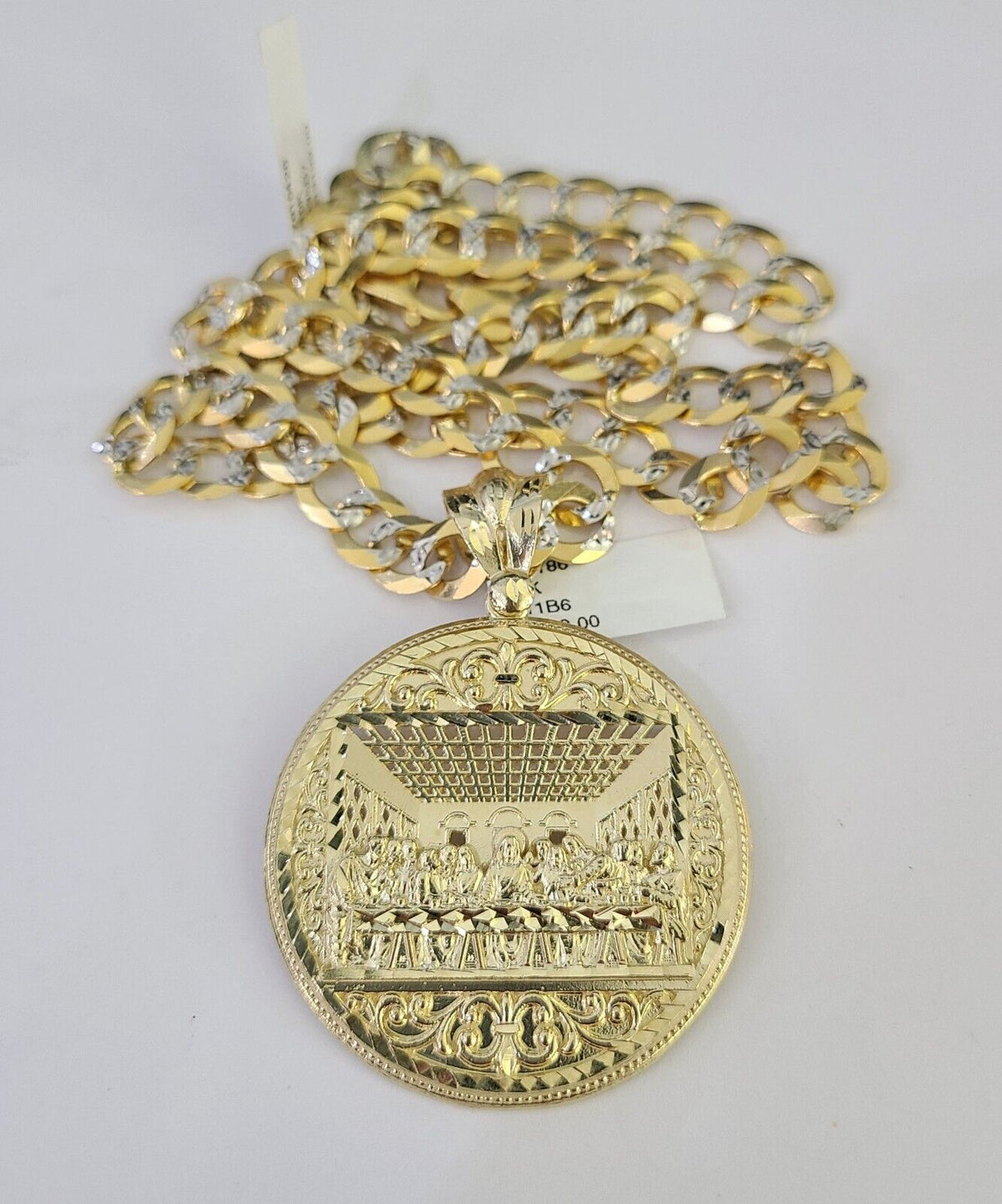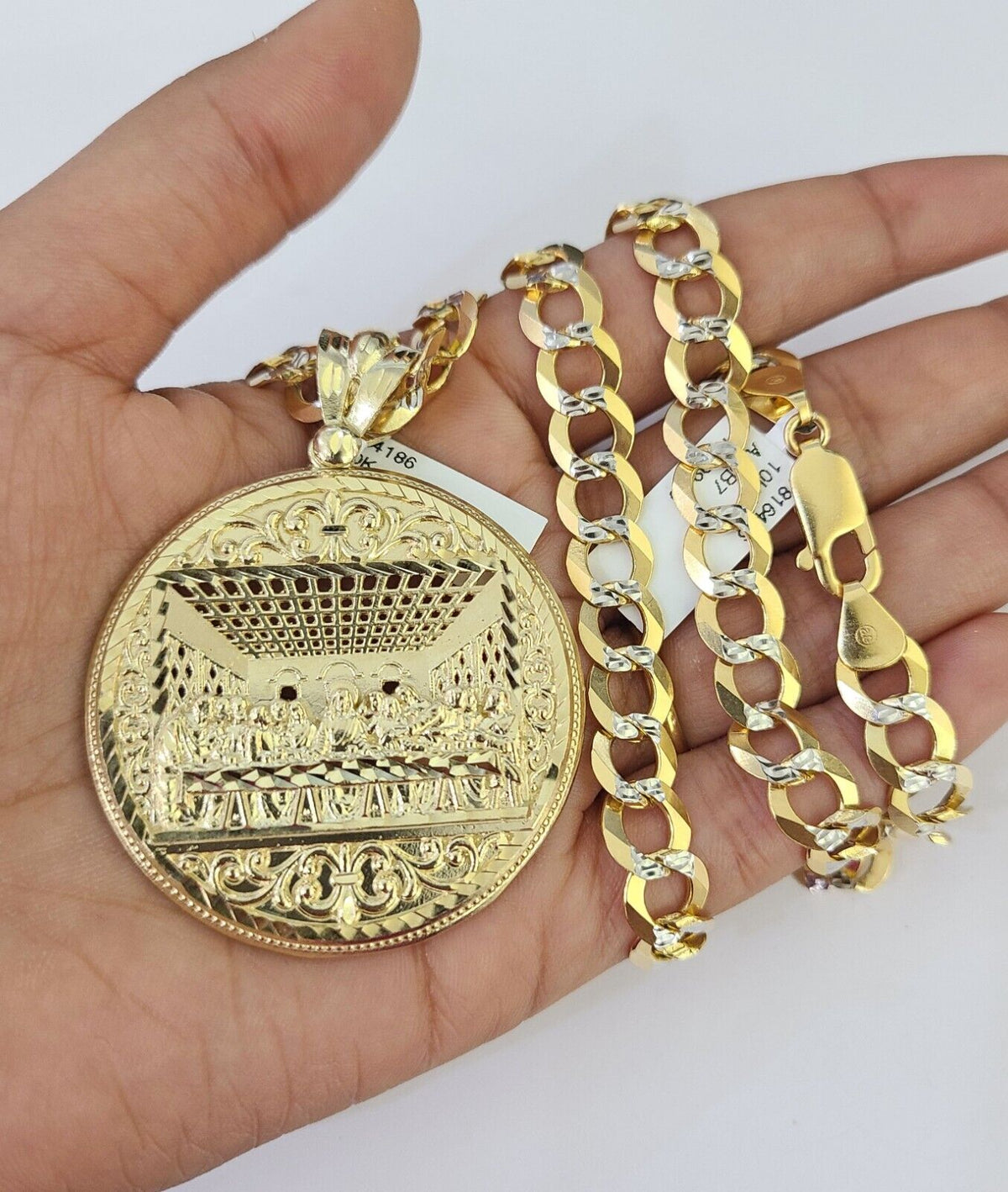 We present You with This Absolutely Stunning Real 10k Yellow Gold SOLID Cuban Curb link Chain Diamond Cuts with Last Supper Charm. It has a detailed cut with a very good finish. These Beautiful Chains will not tarnish, discolor, or fade because they are Pure 10K Gold. Please feel free to contact us if you have any queries regarding the item. 24"-A35B7 A11B6