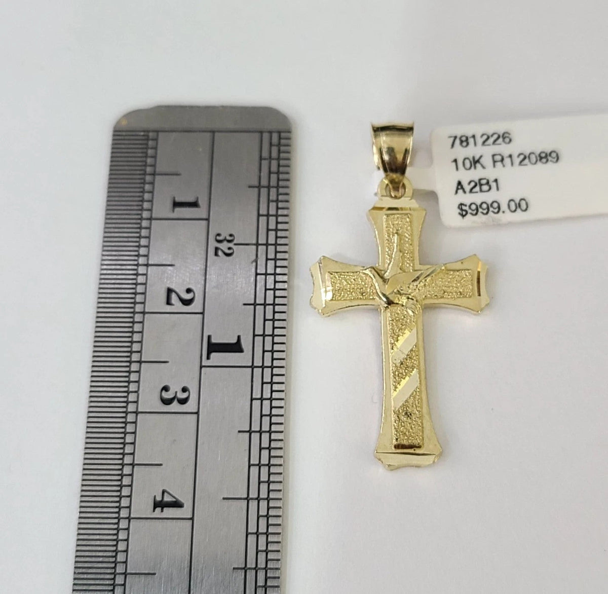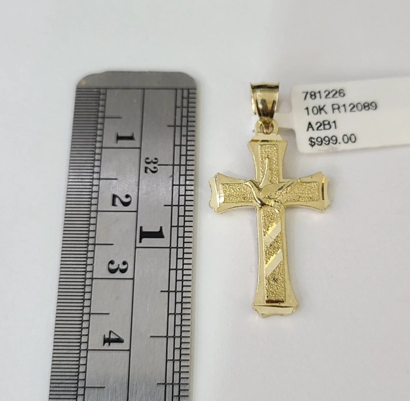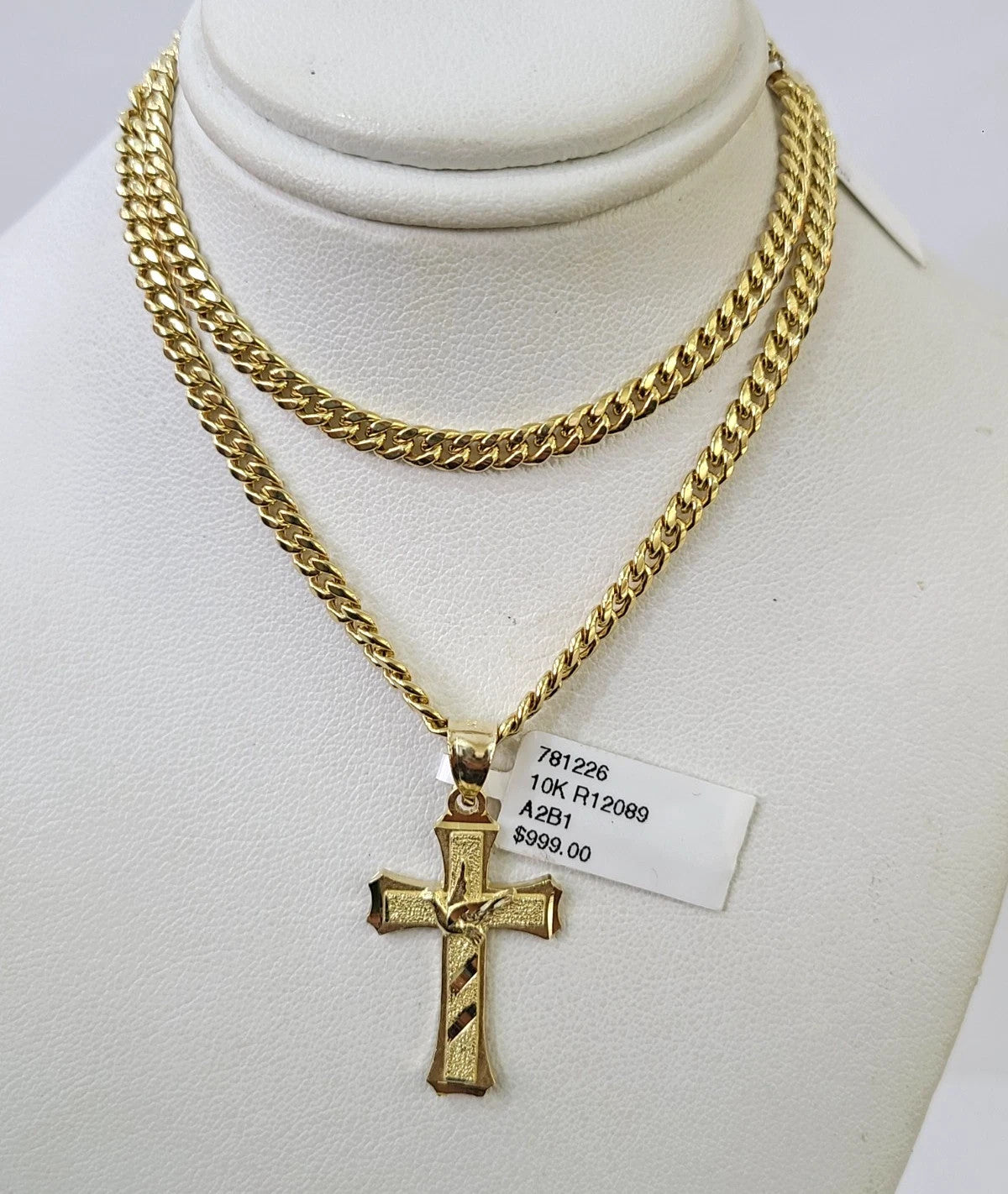 10k Gold Chain Miami Cuban Jesus Cross Charm Pendant Set 4mm 18"-28" Necklace - 20 Inch