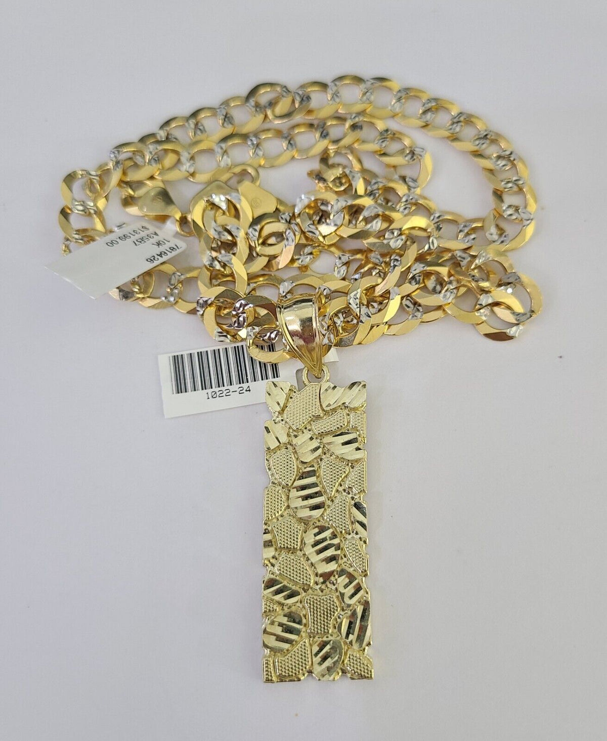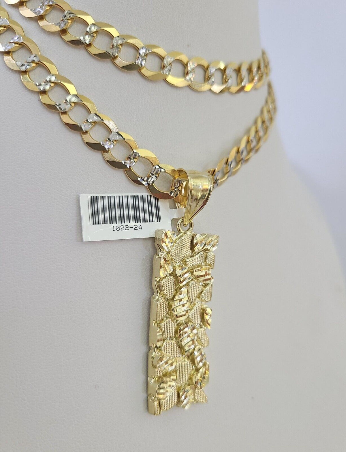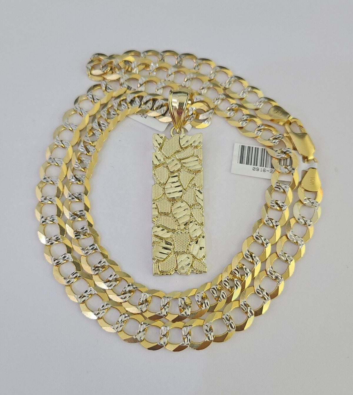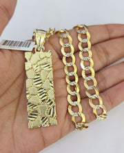We present You with This Absolutely Stunning Real 10k Yellow Gold SOLID Cuban Curb link Chain Diamond Cuts with Nugget Charm. It has a detailed cut with a very good finish. These Beautiful Chains will not tarnish, discolor, or fade because they are Pure 10K Gold. Please feel free to contact us if you have any queries regarding the item. 24"-A35B7 A7B7