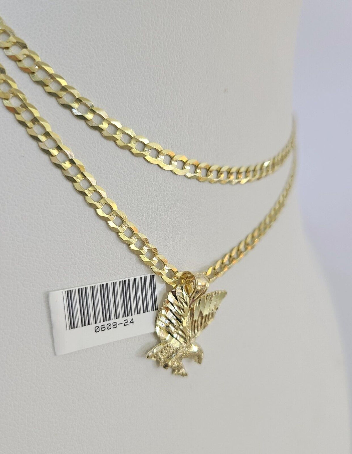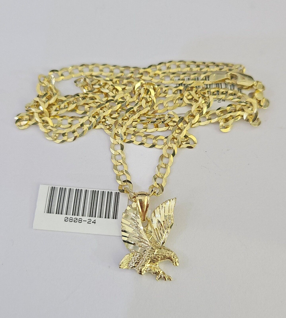 We present You with This Absolutely Stunning Real 10k Yellow Gold SOLID Cuban Curb link Chain with Eagle Charm. It has a detailed cut with a very good finish. These Beautiful Chains will not tarnish, discolor, or fade because they are Pure 10K Gold. Please feel free to contact us if you have any queries regarding the item. 24"-A7B8 A1B9